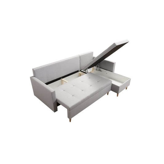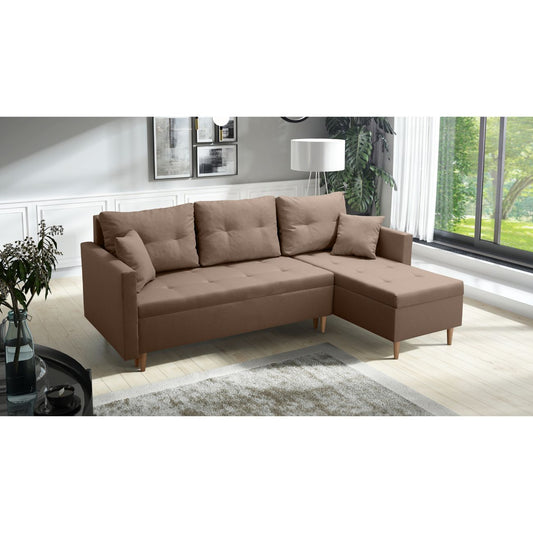 BRĄZOWY NAROŻNIK ROZKŁADANY Z FUNKCJĄ SPANIA SCANDIK PIK 2X POJEMNIK