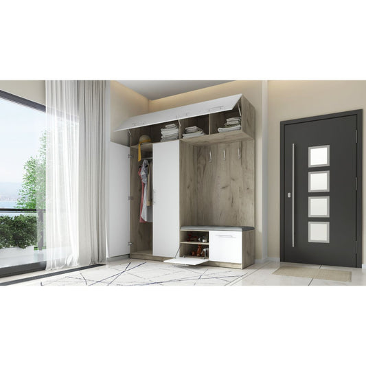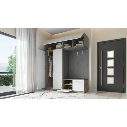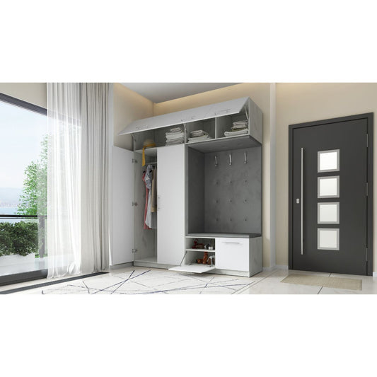 SZAFA DO PRZEDPOKOJU GARDEROBA NA KORYTARZ LILO II 180 CM BIAŁA/SZARA