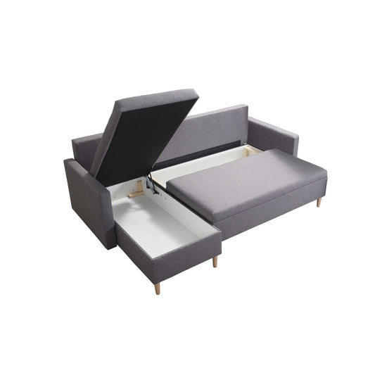GRAFITOWY NAROŻNIK ROZKŁADANY Z FUNKCJĄ SPANIA SCANDIK PIK 2X POJEMNIK
