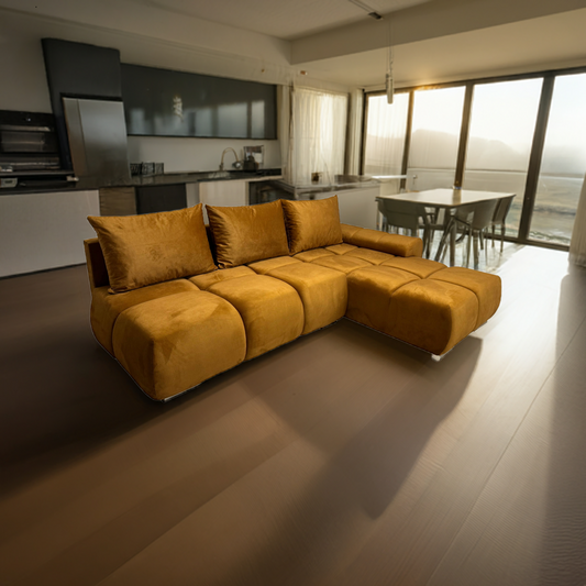 NOWOCZESNY NAROŻNIK ROZKŁADANY CANDY L NA WYSOKICH NÓŻKACH WELUR POJEMNIK