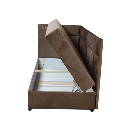 Tapicerowane pojedyncze łóżko 90x200 pojemnik sprężyny bonell sztruks beż