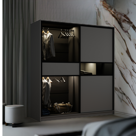 NOWOCZESNA SZAFA PRZESUWNA NA UBRANIA DREAM 200 CM GARDEROBA LED GRAFIT
