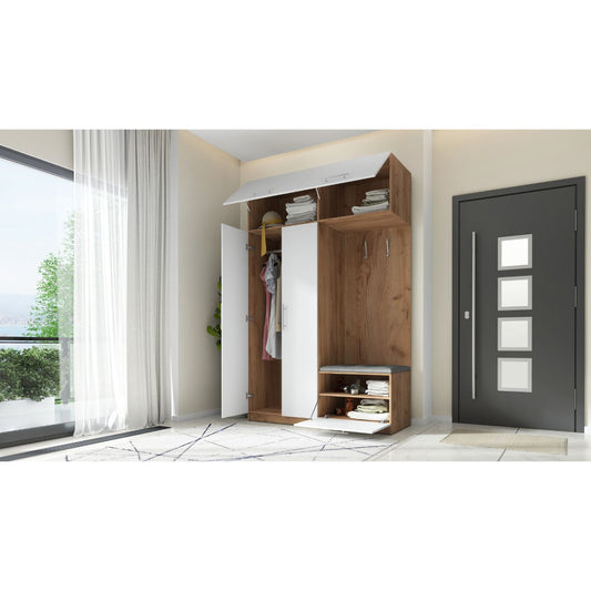 SZAFA DO PRZEDPOKOJU GARDEROBA NA KORYTARZ LILO 120 V BIAŁA / CRAFT SZARY