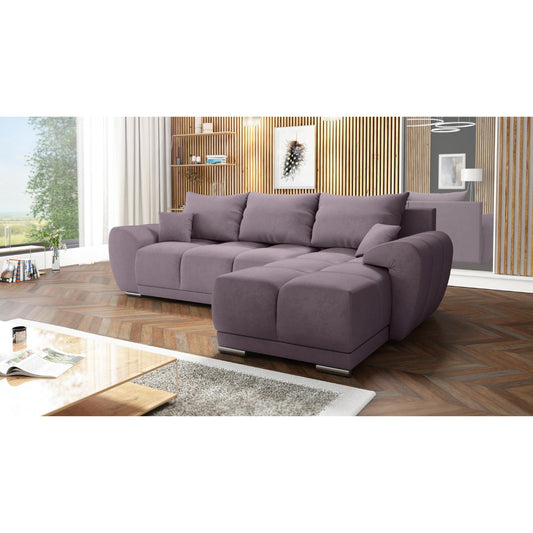 LAWENDOWY PIKOWANY NAROŻNIK ROZKŁADANY ROGÓWKA Z FUNKCJĄ SPANIA HONEY L