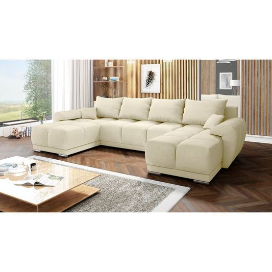 BEŻOWY DUŻY PIKOWANY NAROŻNIK ROZKŁADANY ROGÓWKA DO SALONU HONEY U MO-04