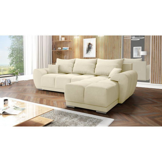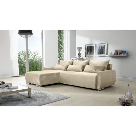 JASNY BEŻ NAROŻNIK KANAPA ROZKŁADANA Z FUNKCJĄ SPANIA HONEY L + POJEMNIK