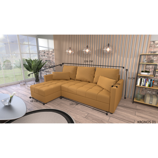 NOWOCZESNY PIKOWANY NAROŻNIK ROZKŁADANY ORION BONELL WELUR POJEMNIK 226 CM
