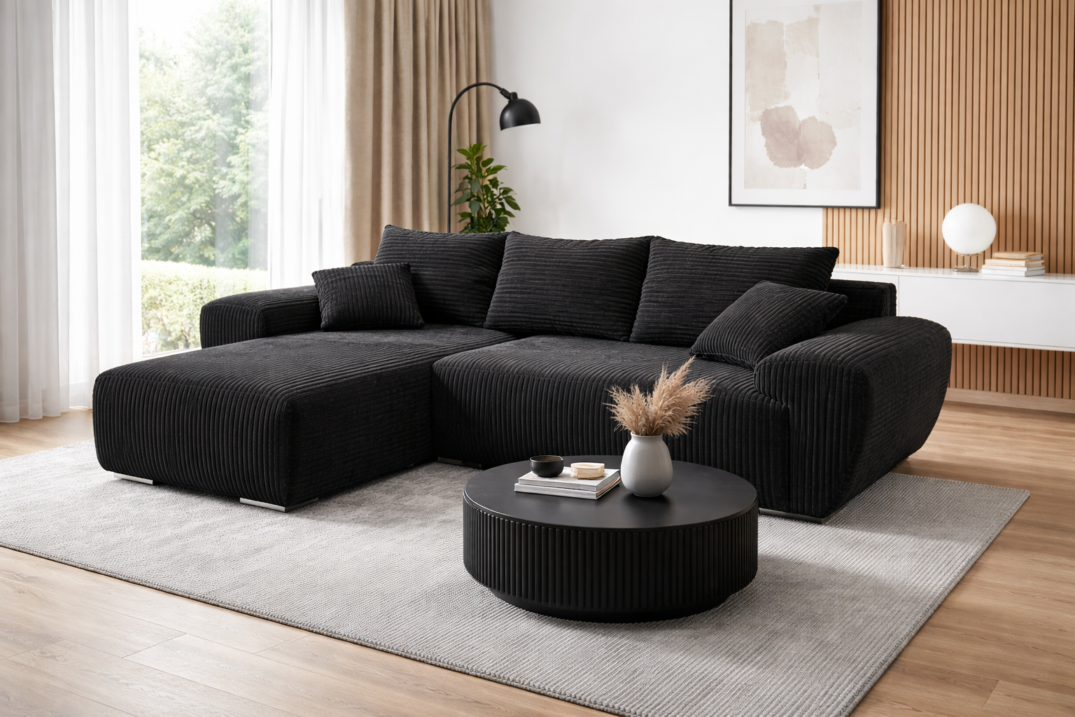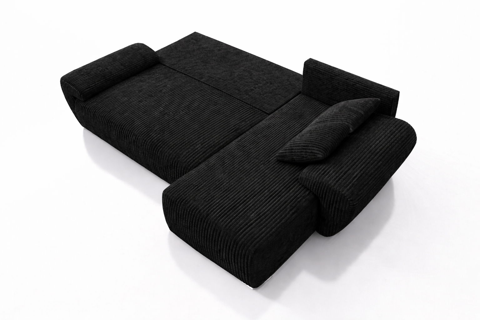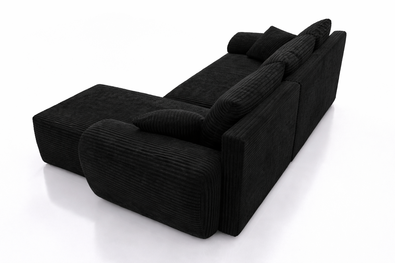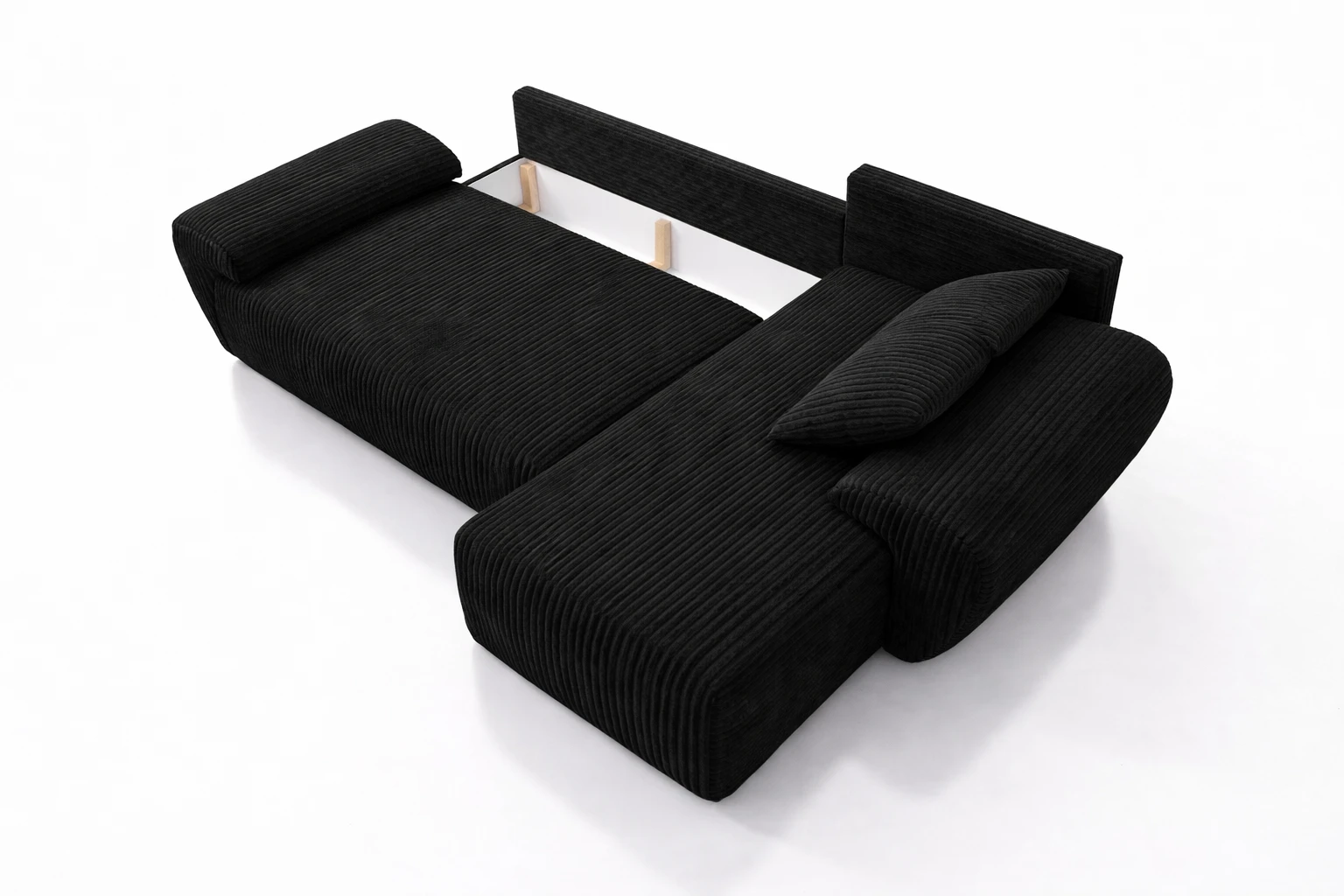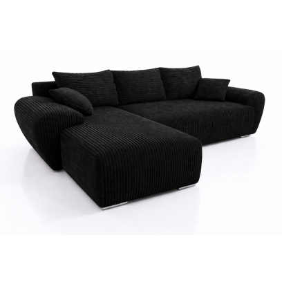 Czarny sztruksowy narożnik UBO narożnik z funkcja spania + pojemnik na pościel 276 cm