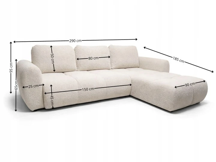 Tkanina Centaur typu baranek – miękka, przyjemna w dotyku i nadająca wnętrzu ciepły, przytulny charakter. Komfort użytkowania – solidna konstrukcja, rama drewniana i sprężyny faliste zapewniają wygodę oraz trwałość. Funkcja spania – powierzchnia spania 130 x 240 cm daje dużo miejsca do odpoczynku