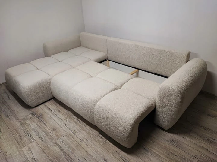Tkanina Centaur typu baranek – miękka, przyjemna w dotyku i nadająca wnętrzu ciepły, przytulny charakter. Komfort użytkowania – solidna konstrukcja, rama drewniana i sprężyny faliste zapewniają wygodę oraz trwałość. Funkcja spania – powierzchnia spania 130 x 240 cm daje dużo miejsca do odpoczynku