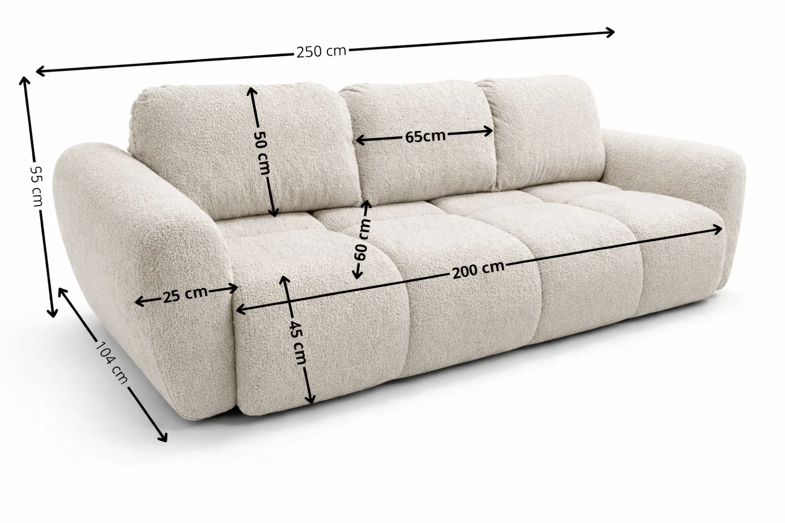 Pikowana Sofa 3-osobowa Fiore z funkcją spania i pojemnikiem na pościel do salonu