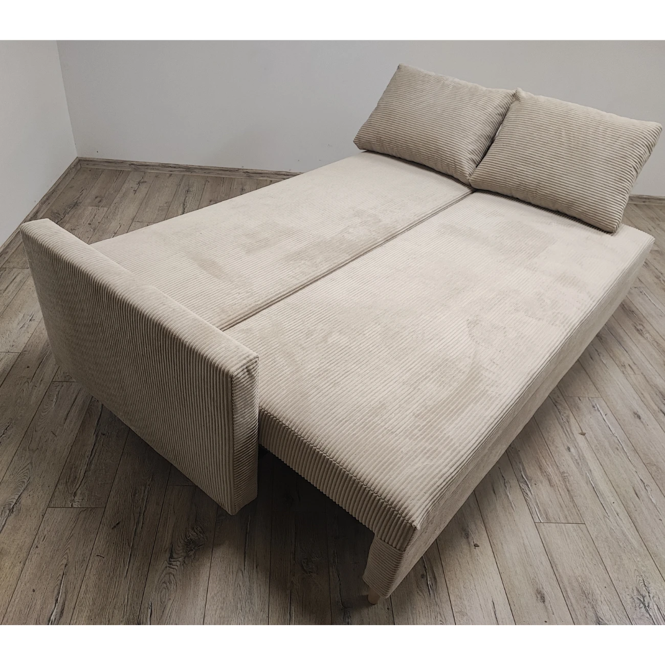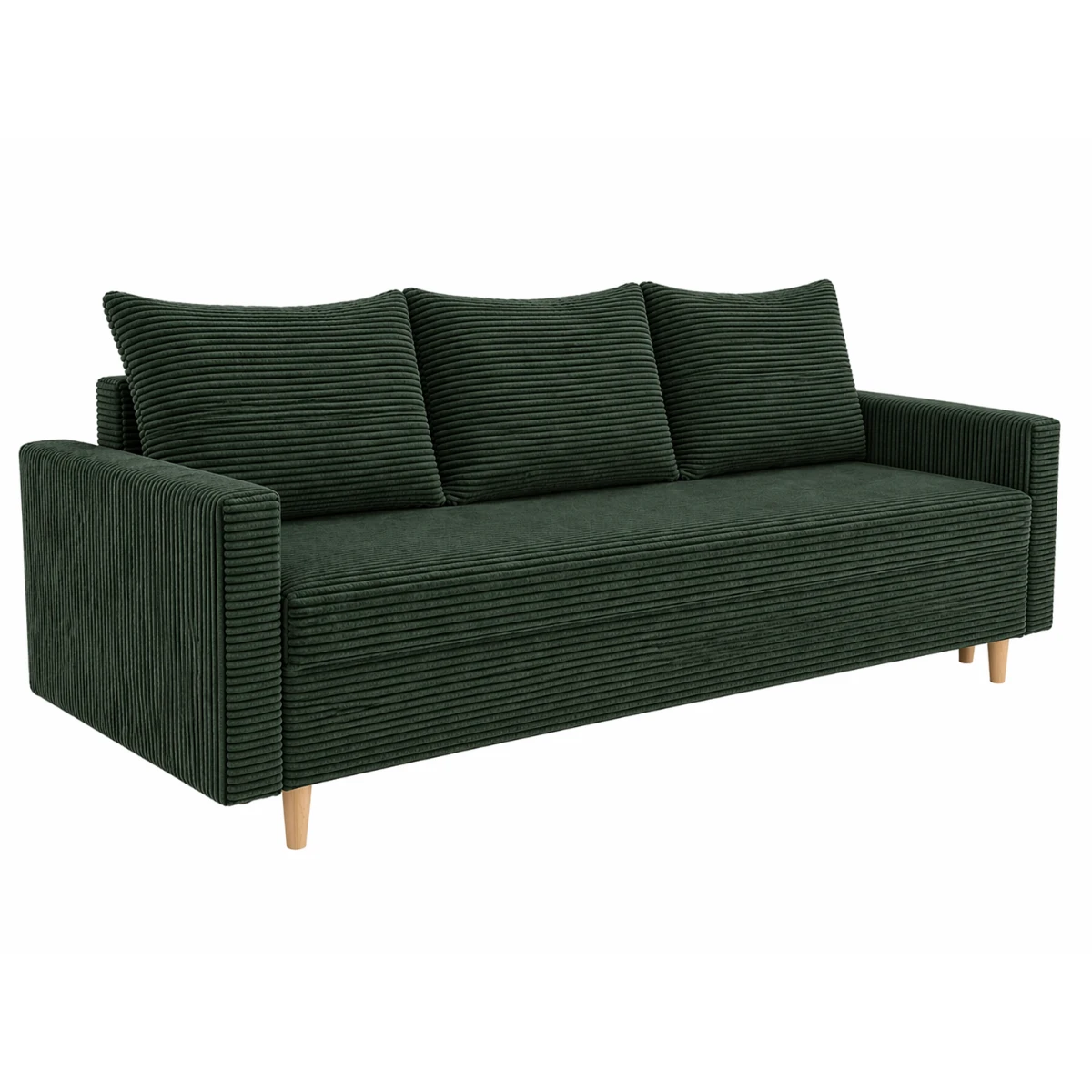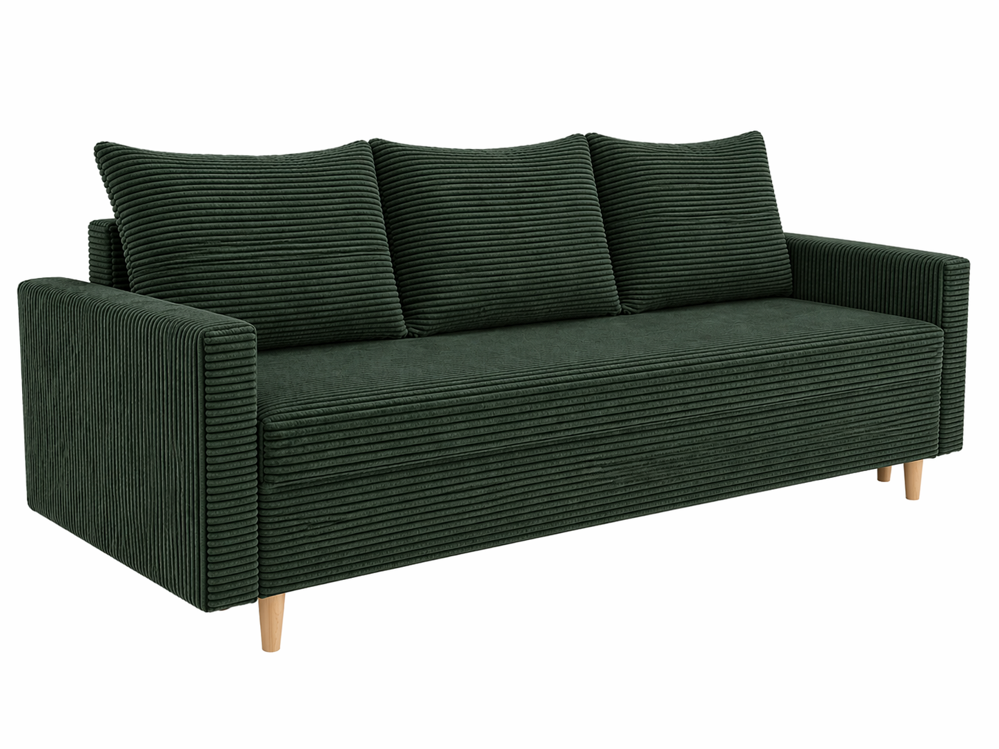 Zielona sztruksowa sofa 210 cm z funkcja spania + pojemnik na pościel DL scandik 3