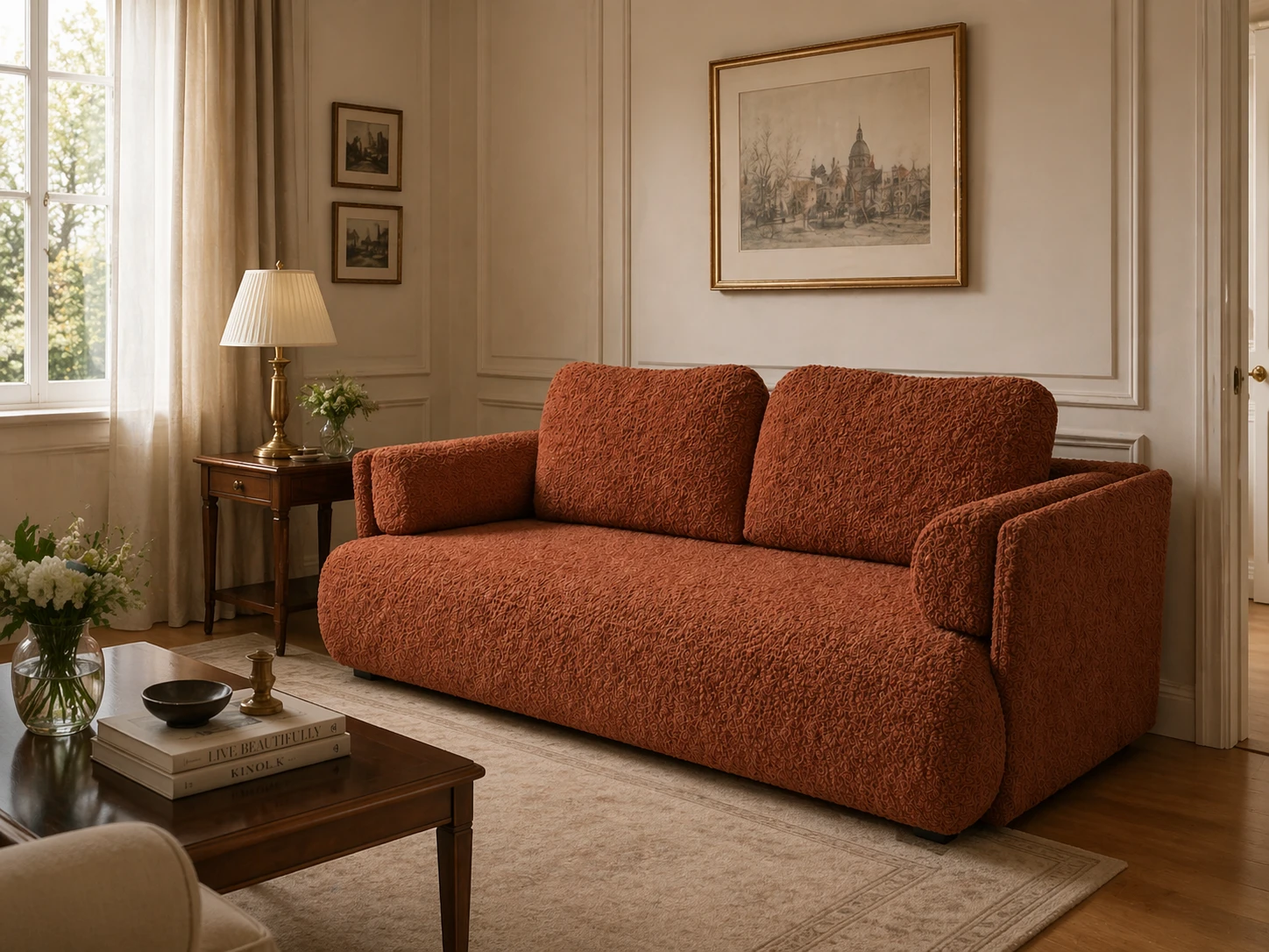 Tkaniny Centaur i Quelle to bouclé o wyrazistej, pętelkowej strukturze, która nadaje meblom modny i przytulny wygląd. Przyjemna faktura oraz zróżnicowana kolorystyka sprawiają, że świetnie prezentują się zarówno w jasnych, jak i bardziej wyrazistych aranżacjach.