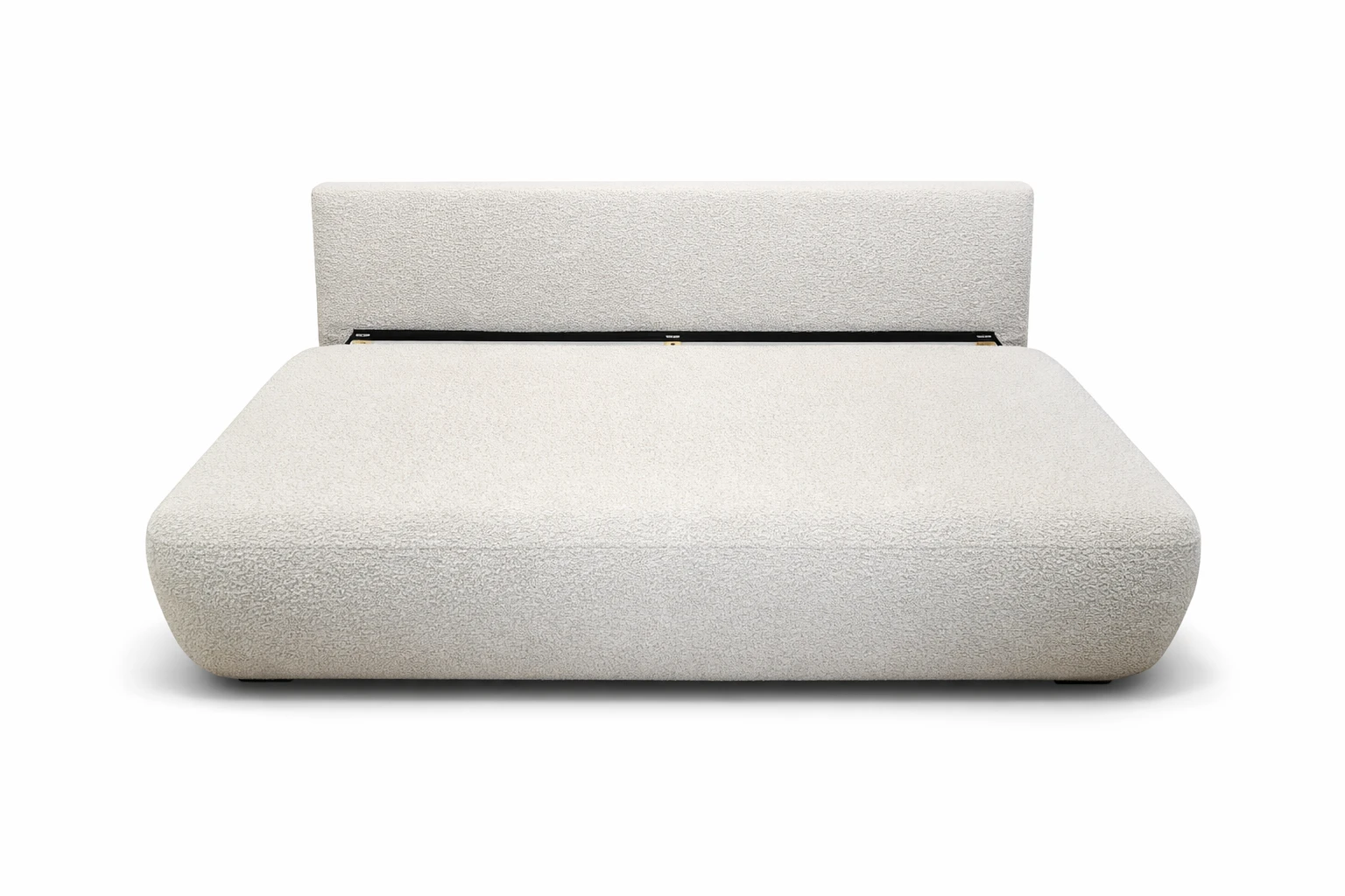 zaokrąglona sofa Zoja z funkcja spania do salonu + pojemnik na pościel
