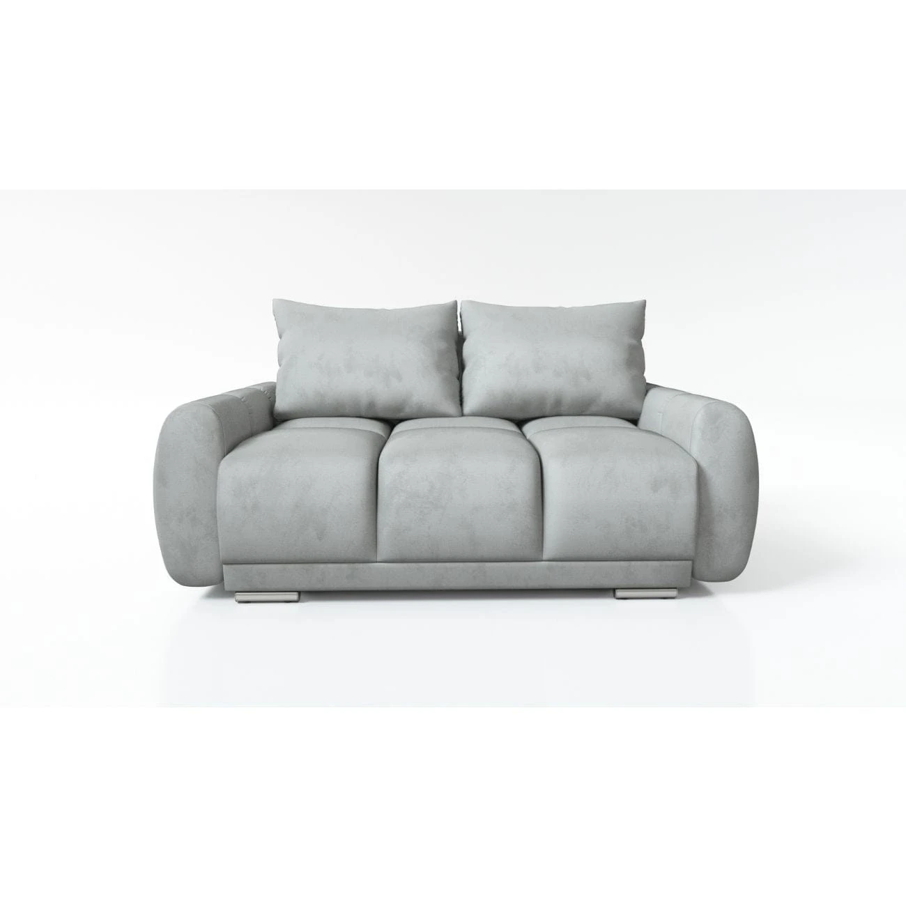 Dwuosobowa sofa do salonu Honey to gustowny mebel, który zwraca uwagę na twoje nieszablonowe wzornictwo. Sofa posiada wciągi na siedzisku, które pojawia się w plastry miodu czy też kostki czekolady. Sofa Honey to solidna konstrukcja , której siedzisko jest wykonane z ram drewnianych , gdzie zamocowane są sprężyny faliste . Za komfort odpowiada Pianka PUR T-30 o następcę. Dwuosobowa sofa została wyposażona w stylowe podłokietniki oraz dwie duże poduszki oparciowe. Z przodu widoczne symbole okrągłe w srebrnym kolorze wykonanym z elementów.