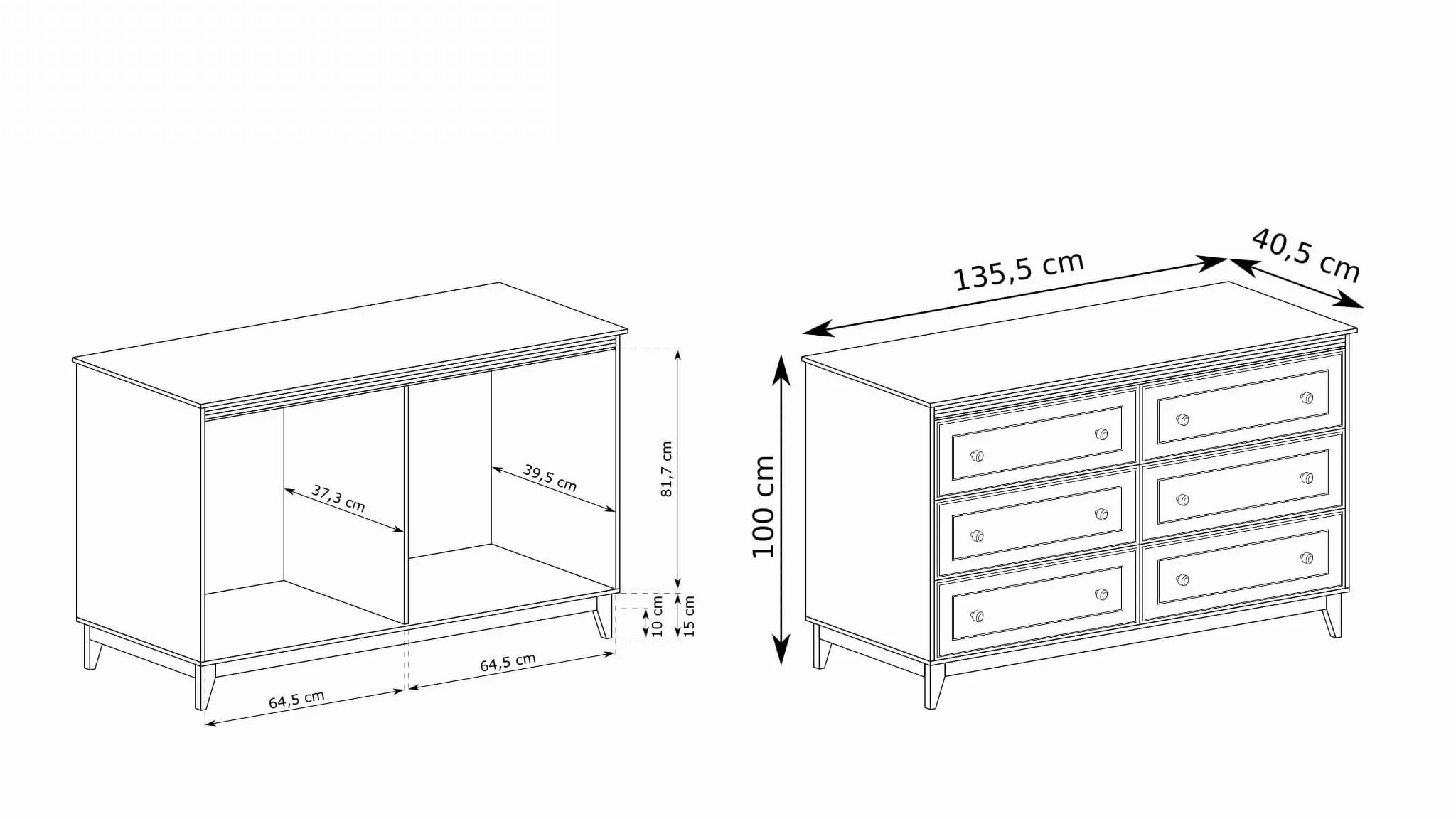 - Korpus komody wykonany z solidnej płyty laminowanej