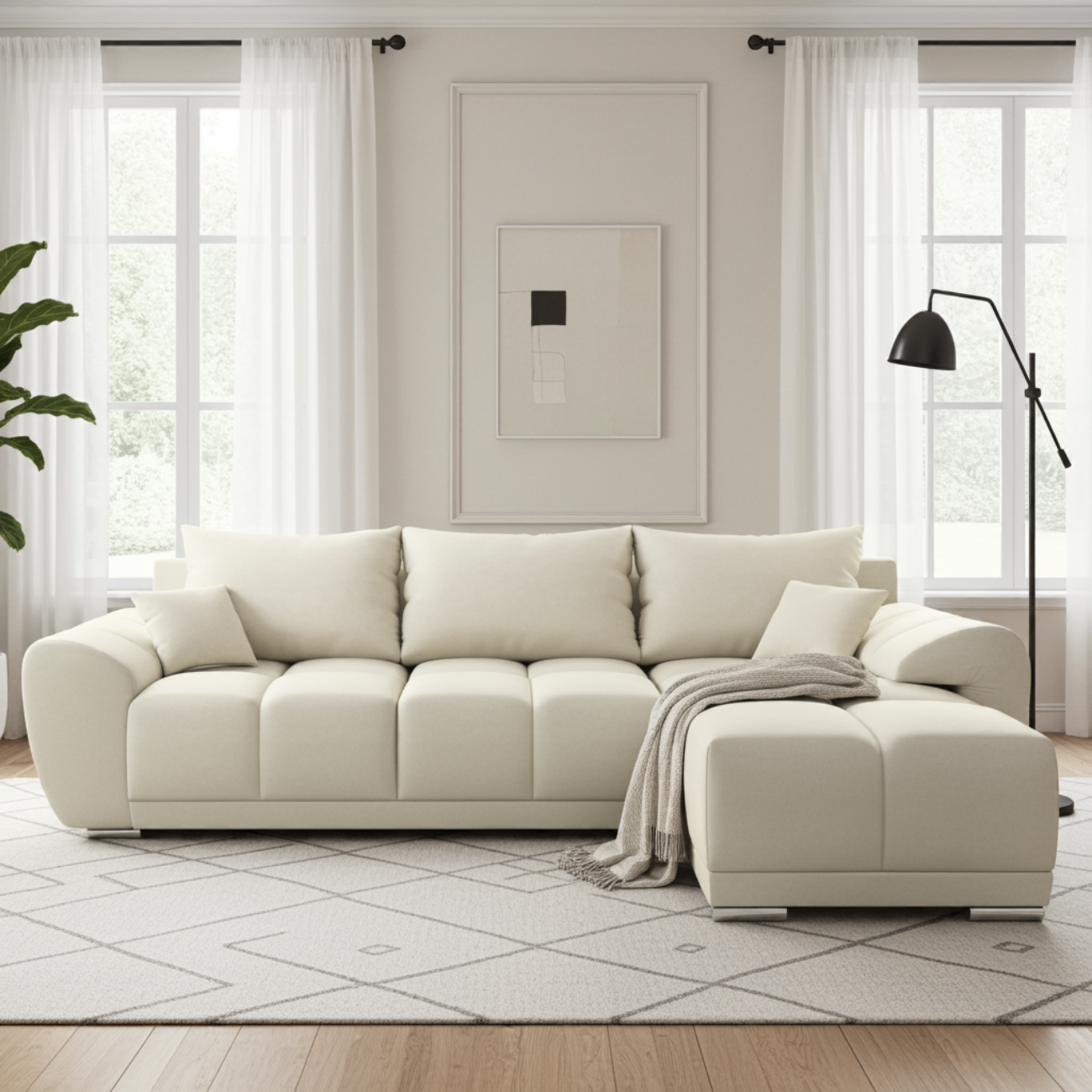 BEŻOWY NAROŻNIK ROZKŁADANY ROGÓWKA Z FUNKCJĄ SPANIA HONEY L MO-04