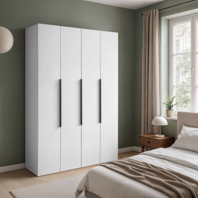 BIAŁA CZTERODRZWIOWA POJEMNA SZAFA GARDEROBA NA UBRANIA LILLE 180