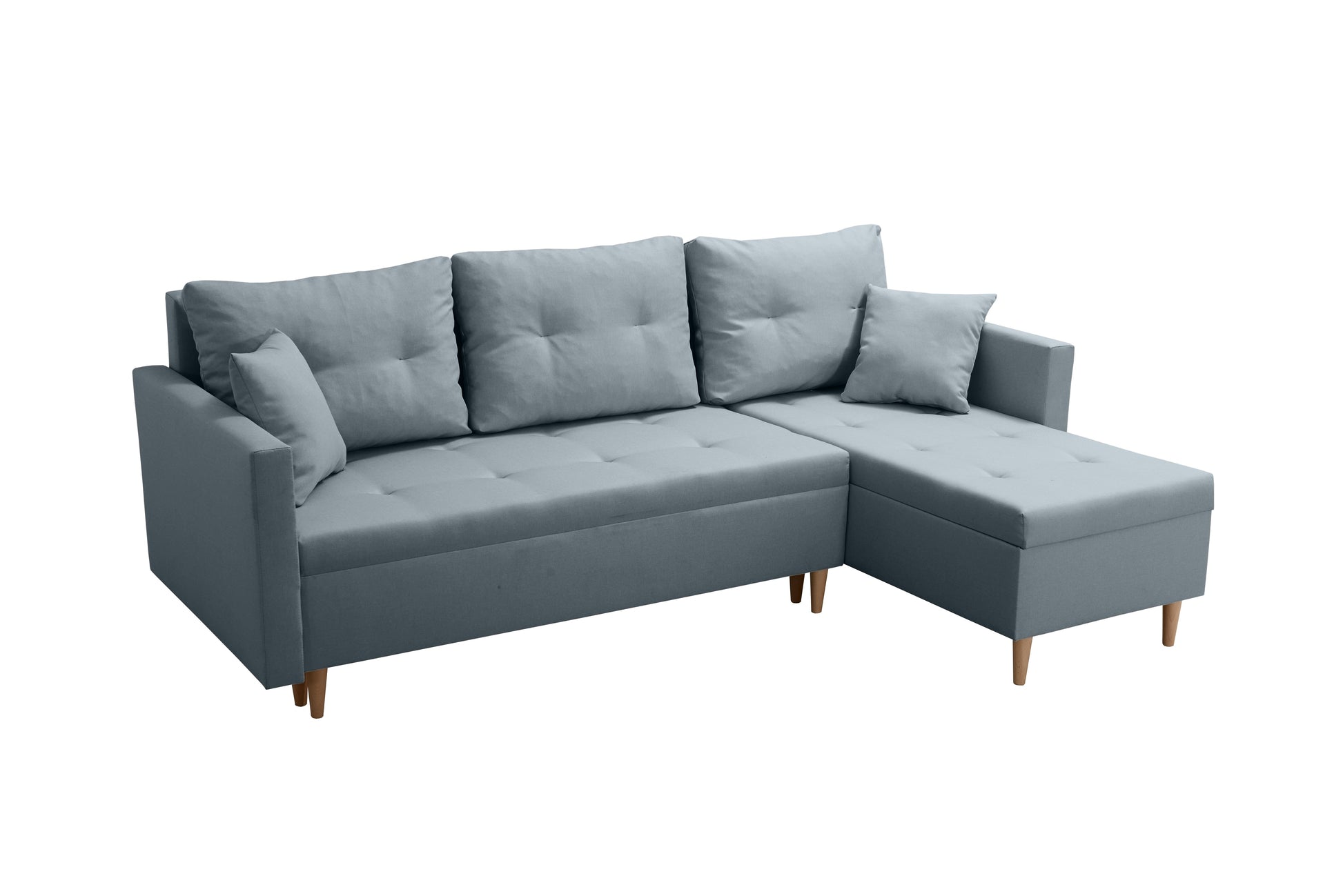 BŁĘKITNY NAROŻNIK ROZKŁADANY Z FUNKCJĄ SPANIA SCANDIK PIK 2X POJEMNIK