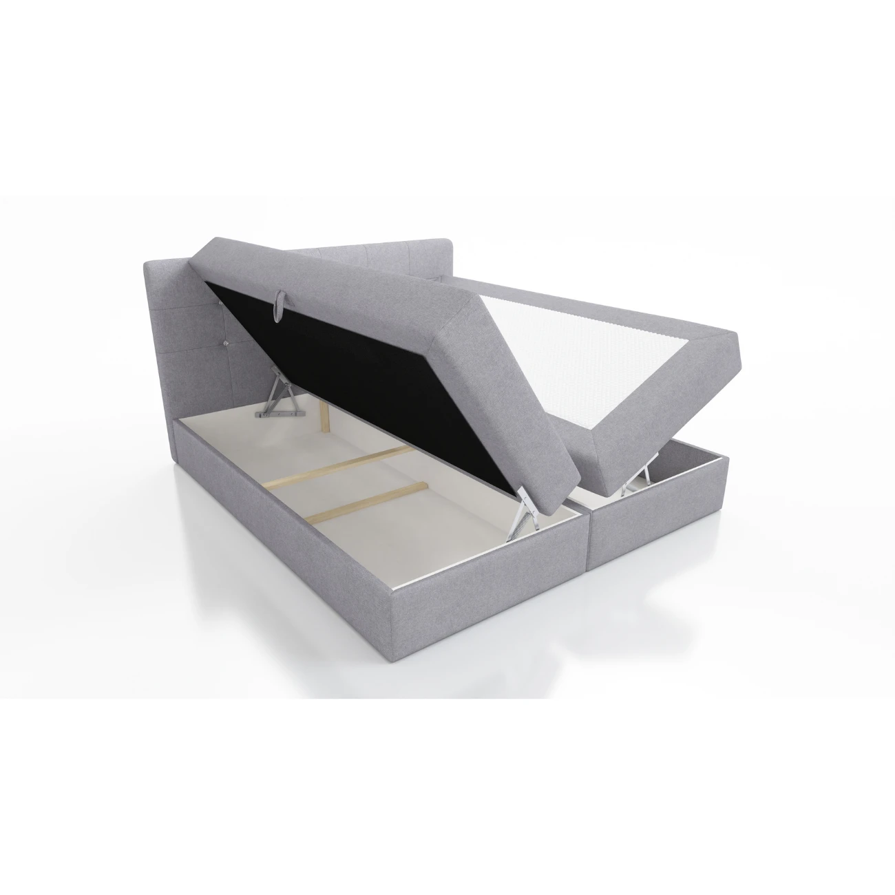 Podwójne łóżko kontynentalne Toledo wyposażone w dwa pojemniki na pościel o głębokości 25 cm. Pojemniki uwalniające przestrzeń, przez wiele innych. Pojemnik w łóżku Toledo może być twoją skrytką na często używanym przez prywatne przedmioty.