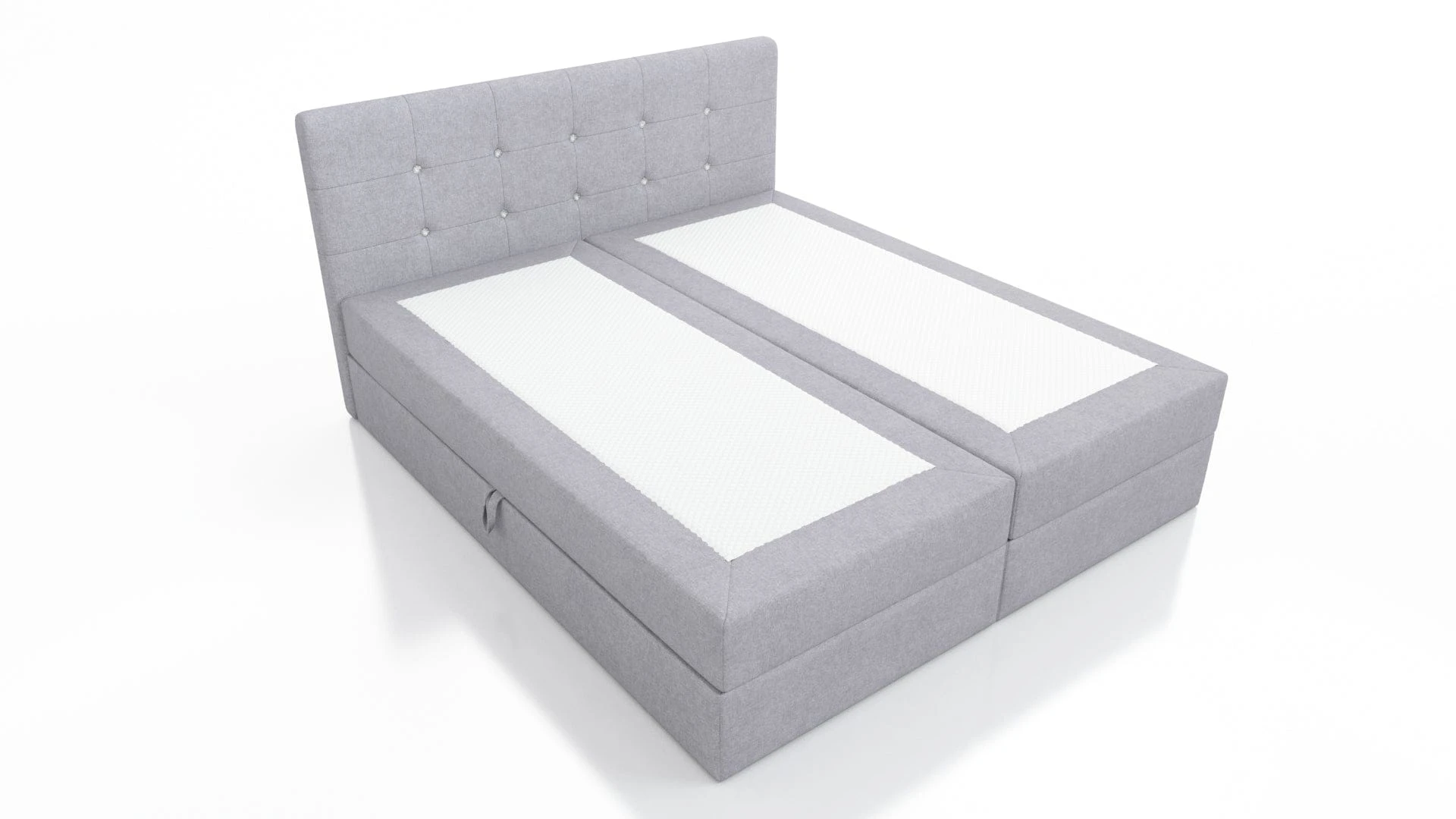 Podwójne łóżko kontynentalne Toledo wyposażone w dwa pojemniki na pościel o głębokości 25 cm. Pojemniki uwalniające przestrzeń, przez wiele innych. Pojemnik w łóżku Toledo może być twoją skrytką na często używanym przez prywatne przedmioty.