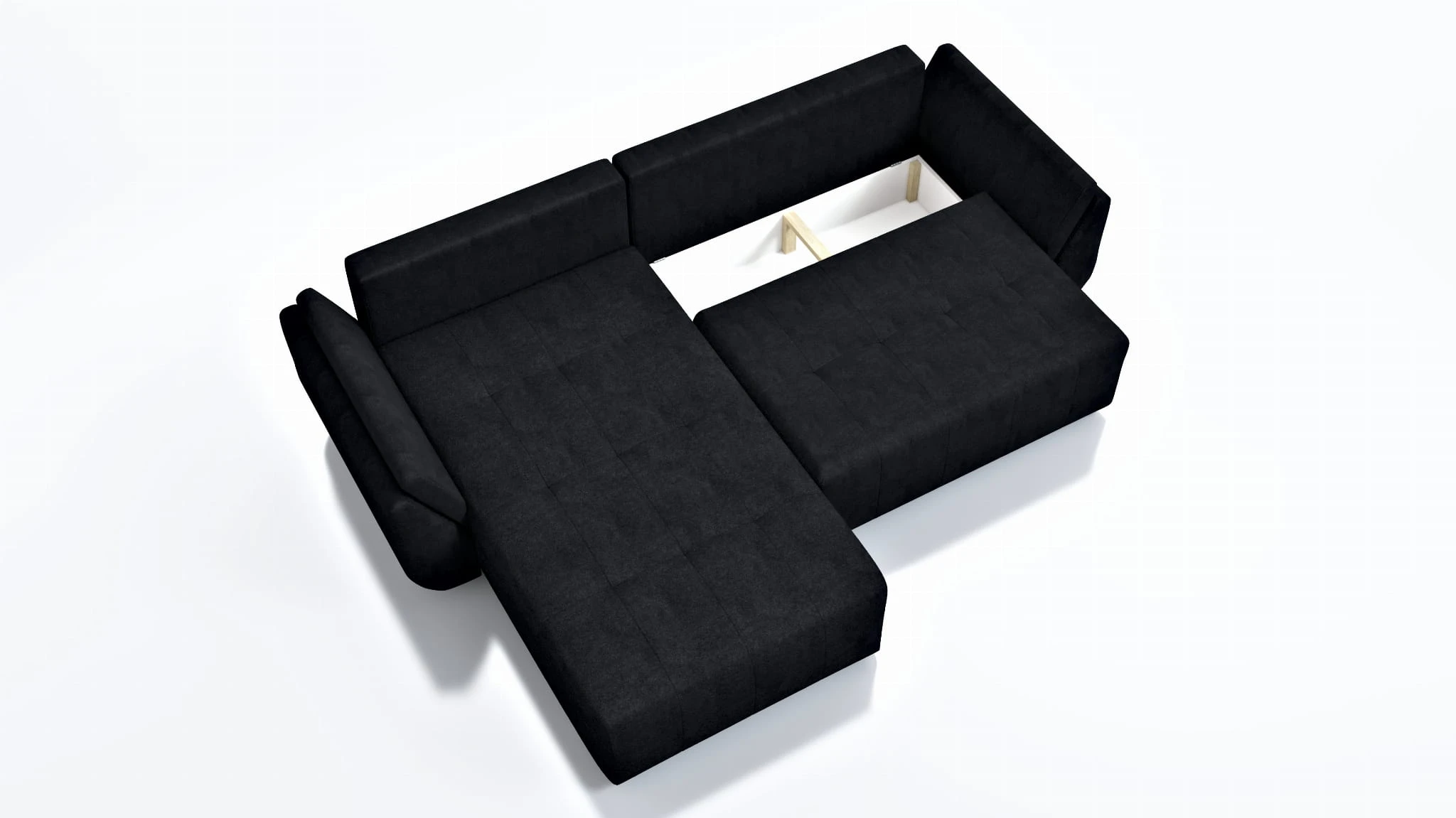 Narożnik z funkcją spania Mira posiada niezwykle trwały szkielet oparty na płycie meblowej oraz licznymi wstawkami z litego drewna. Dodatkowo otomana oraz wysuwany najazd posiada funkcję spania wykonaną na ramie drewnianej.