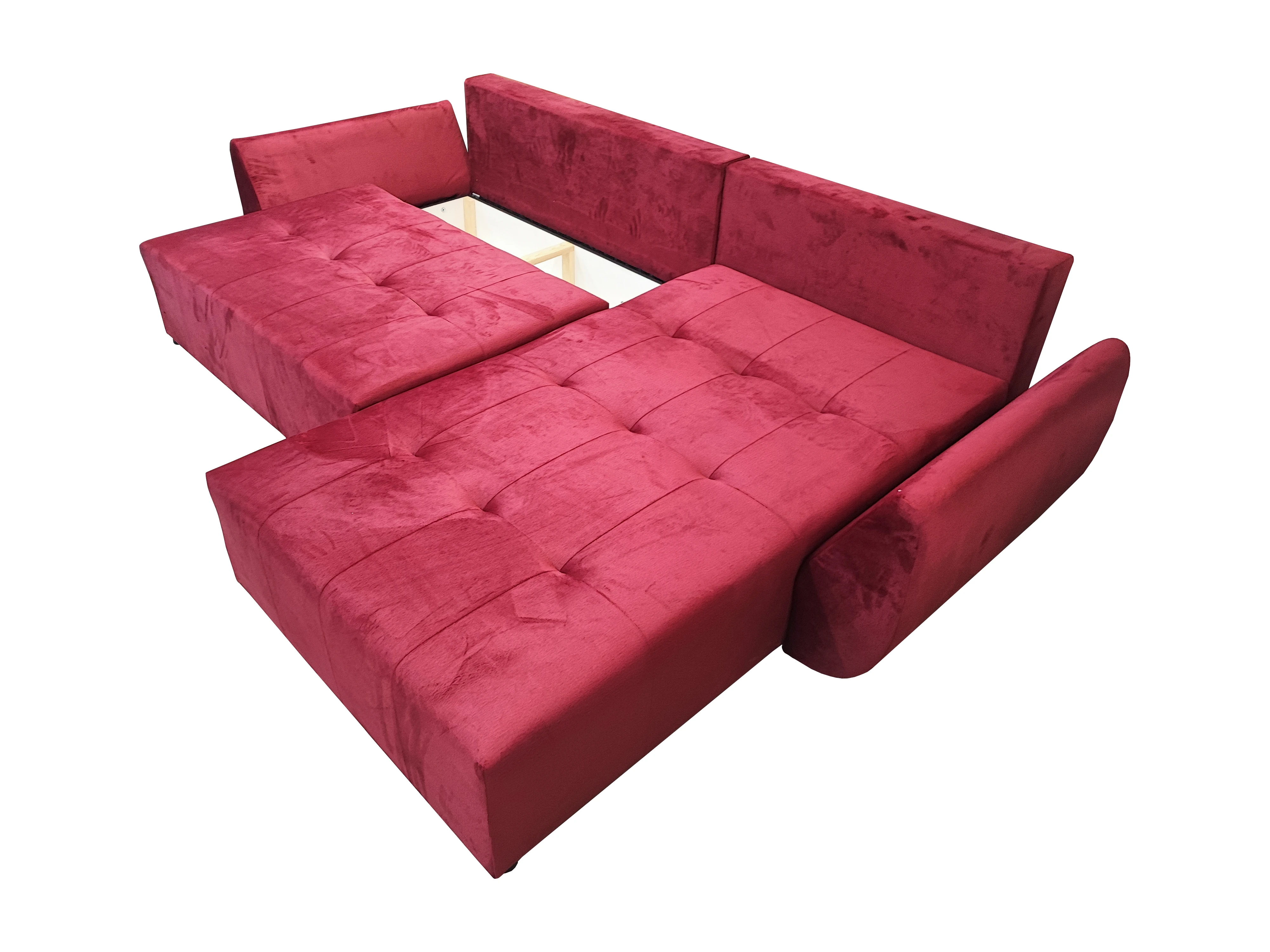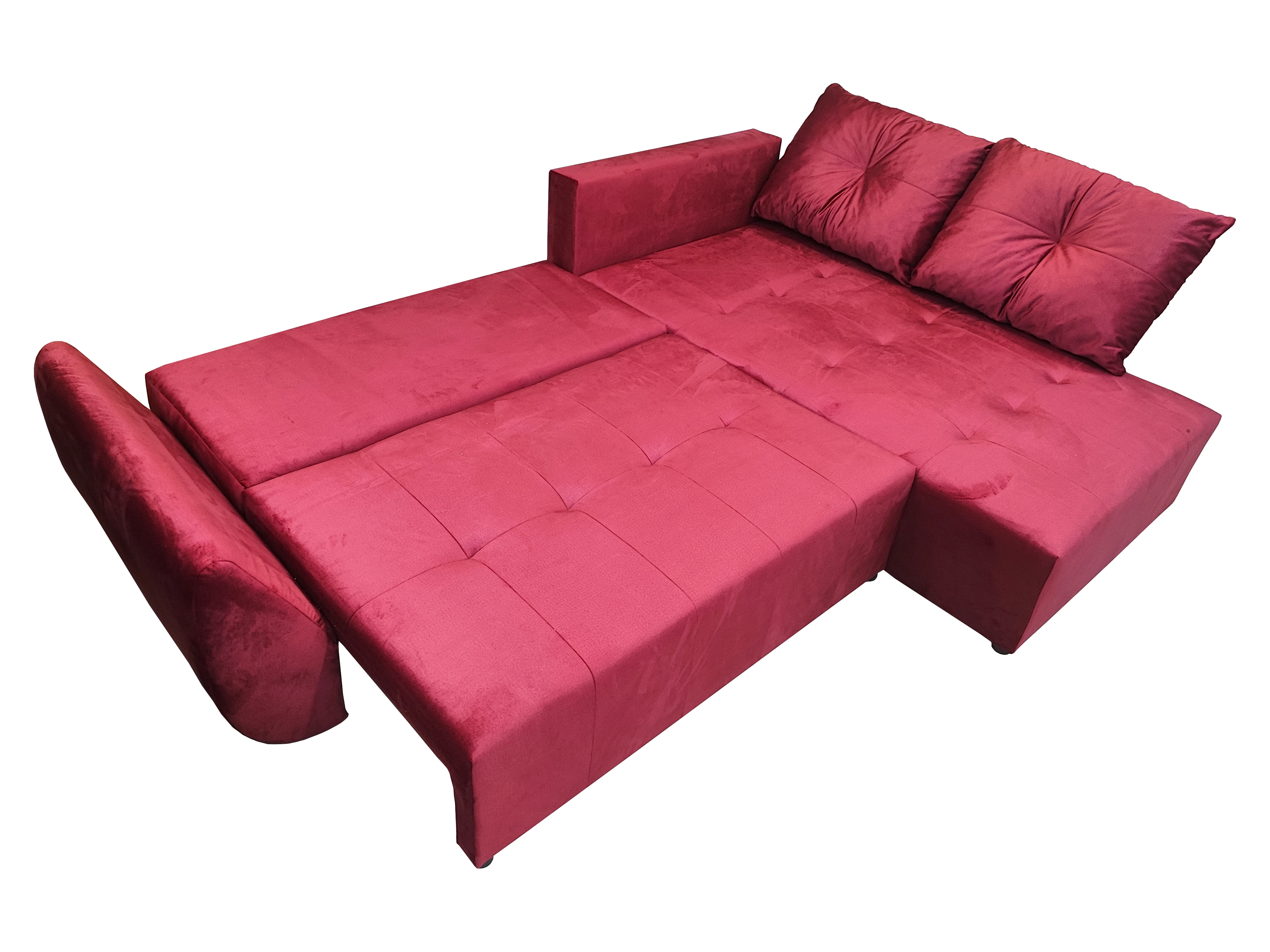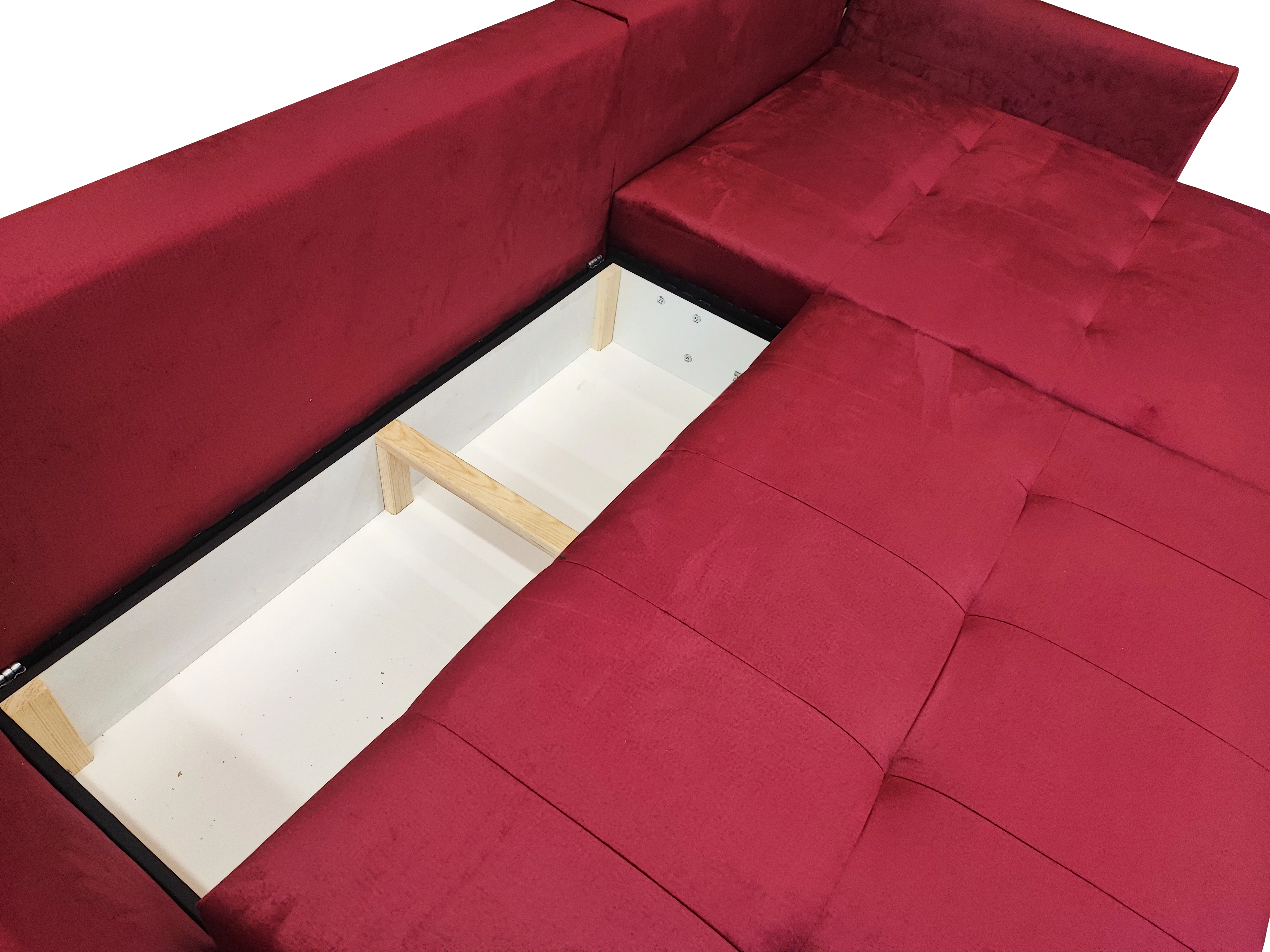 CZERWONY NAROŻNIK ROZKŁADANY ROGÓWKA FUNKCJA SPANIA MIRA SPRĘŻYNY POJEMNIK