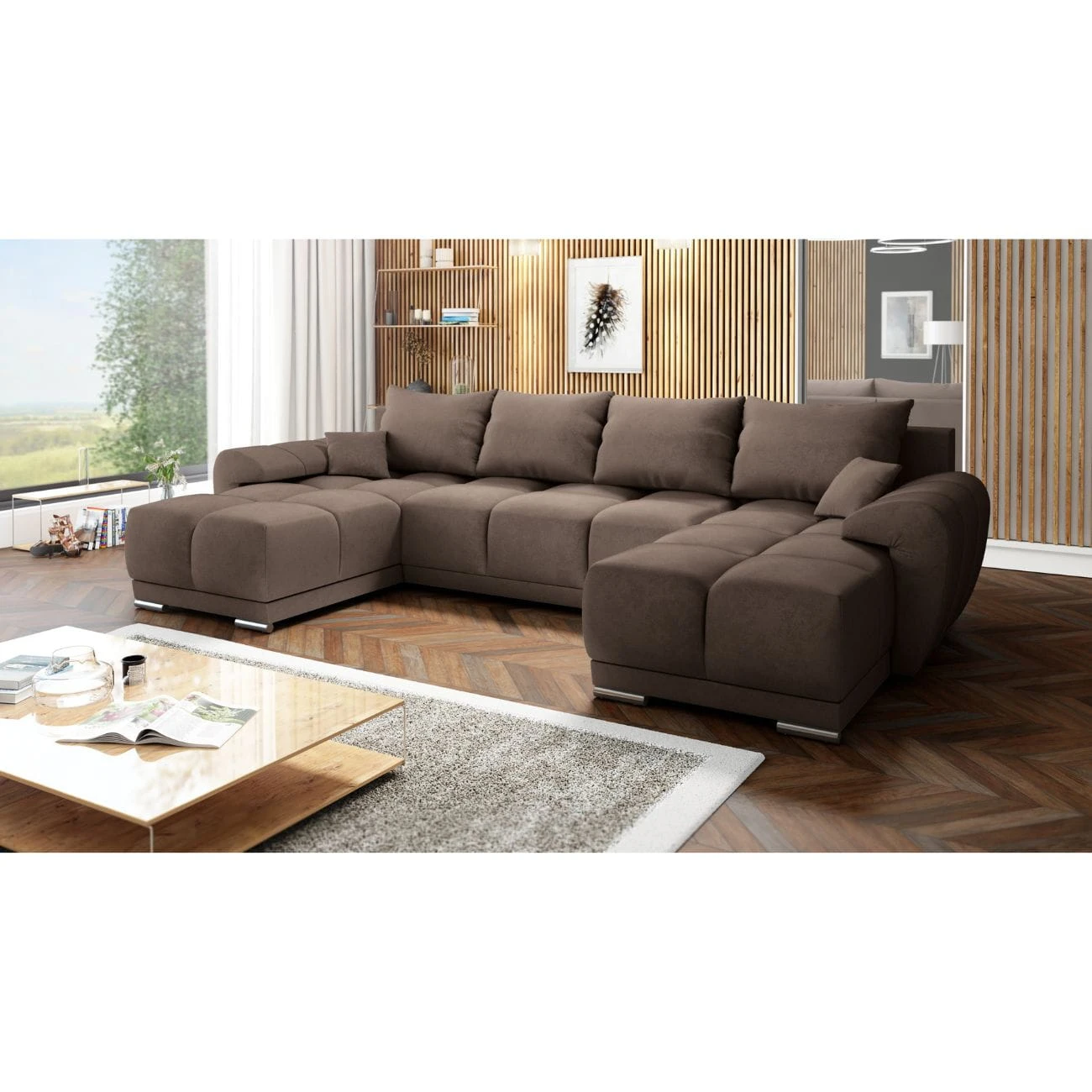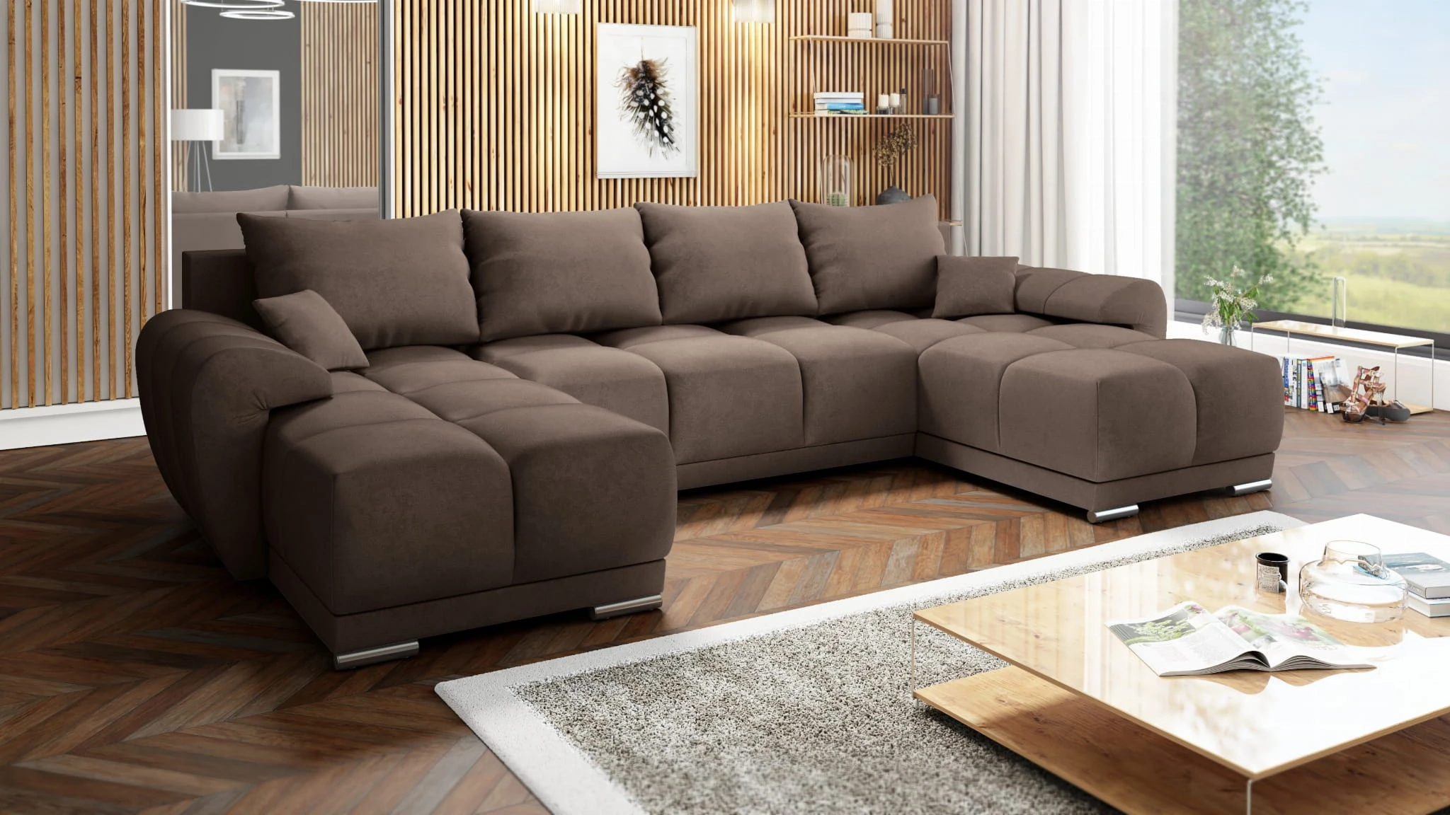 DUŻY BRĄZOWY NAROŻNIK DO SALONU KANAPA ROZKŁADANA ROGÓWKA HONEY U MO-15