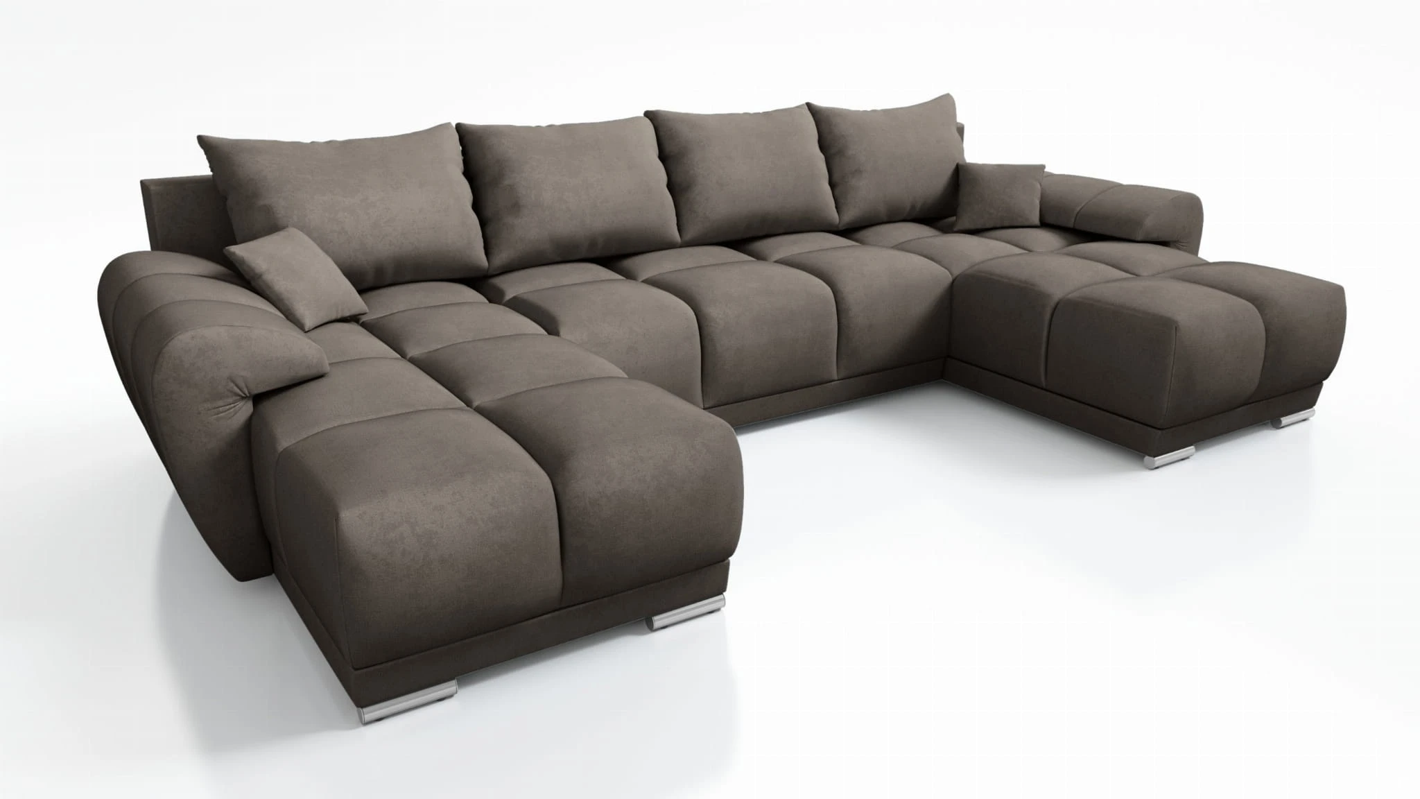 Narożnik rozkładany Honey U został wyposażony w funkcję spania o powierzchni 130x310 cm. To odpowiednia szerokość dla dwóch osób.