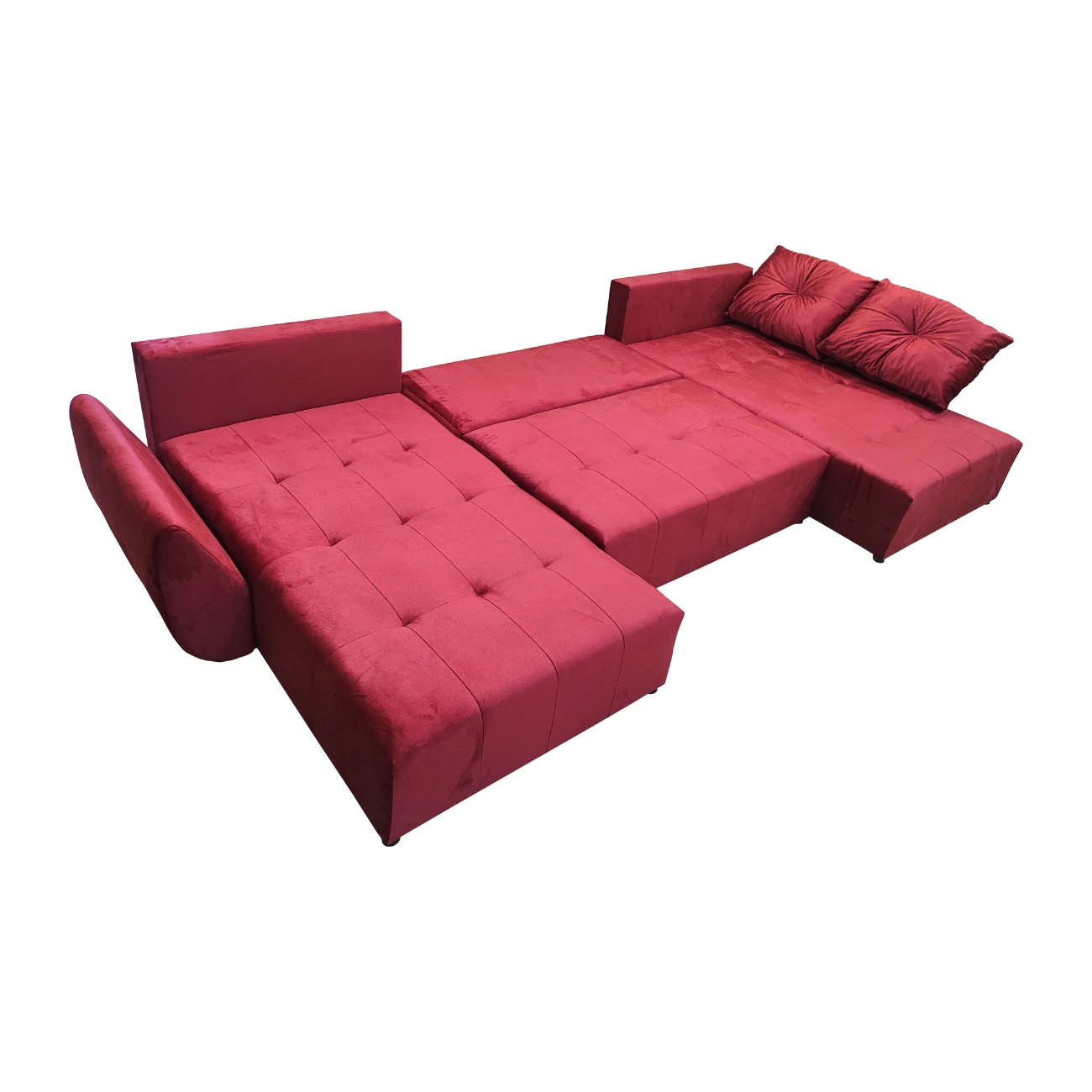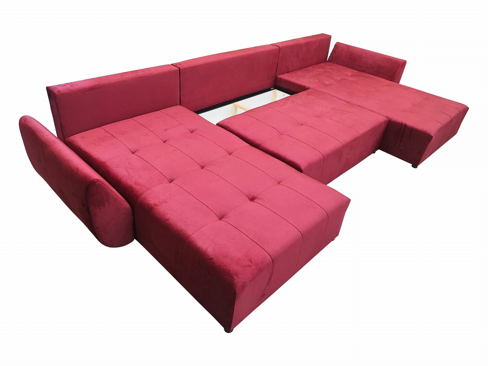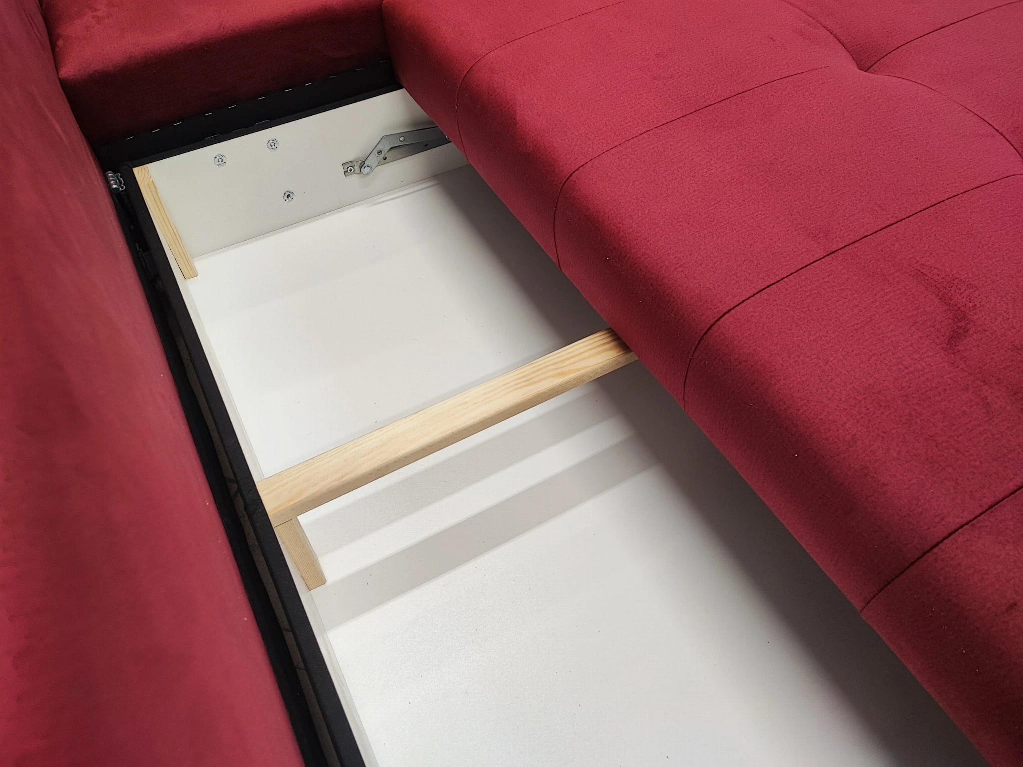 DUŻY CZERWONY NAROŻNIK ROZKŁADANY DO SALONU MIRA SPRĘŻYNY POJEMNIK WELUR