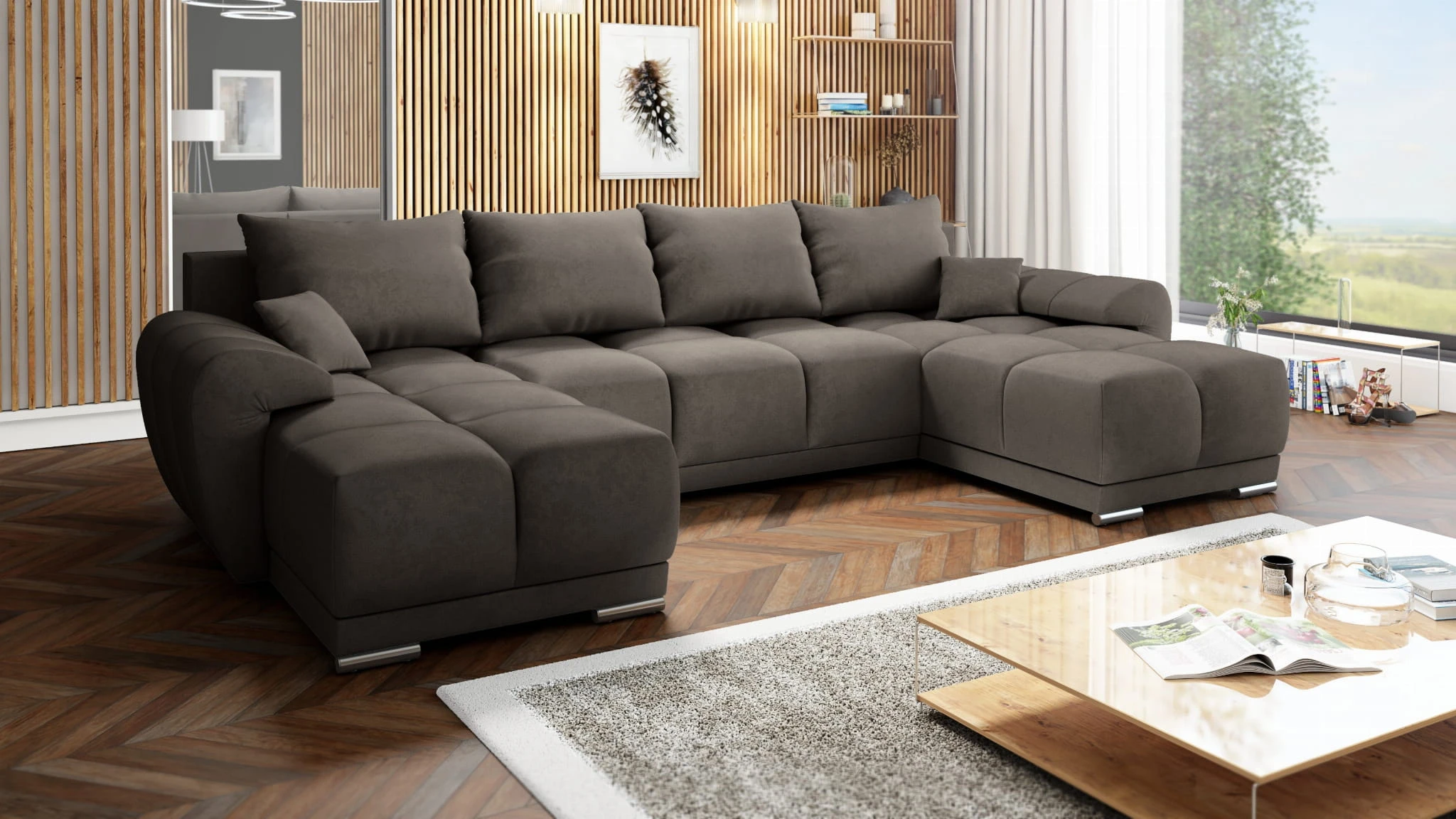 Narożnik rozkładany Honey U został wyposażony w funkcję spania o powierzchni 130x310 cm. To odpowiednia szerokość dla dwóch osób.