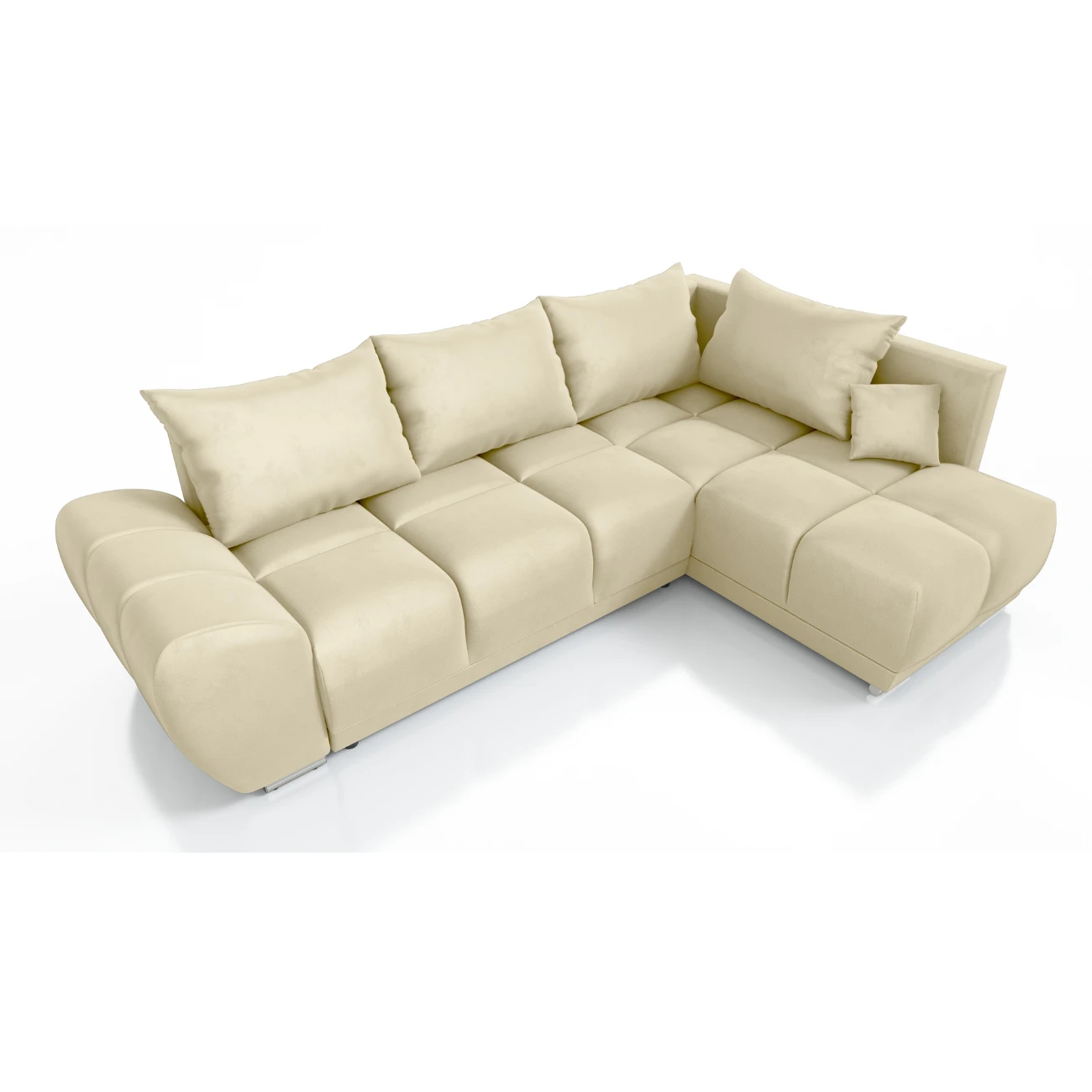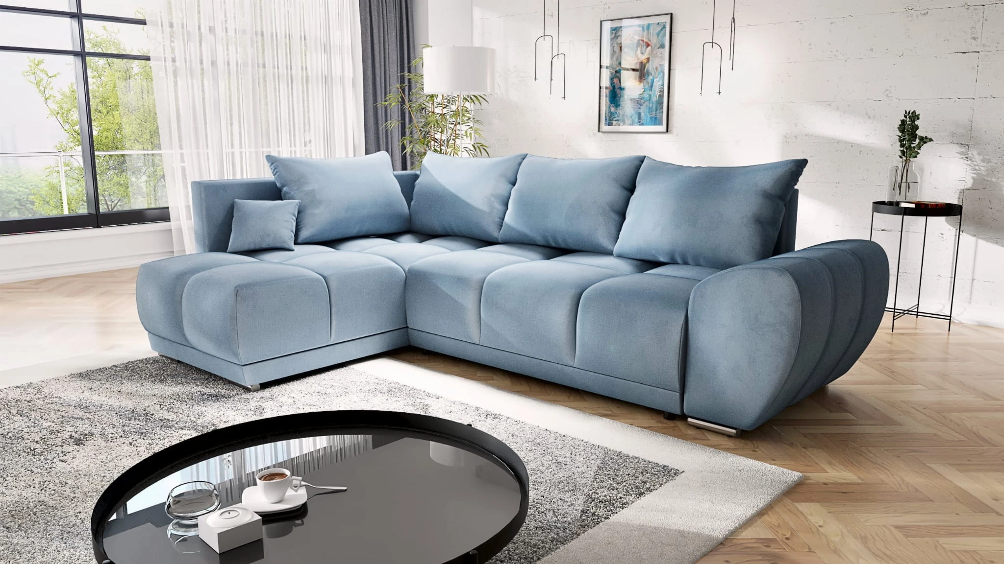 Głęboko pikowane wcięcia – Nowoczesny, elegancki design z głębokim pikowaniem przyciąga wzrok i nadaje narożnikowi wyjątkowy charakter.