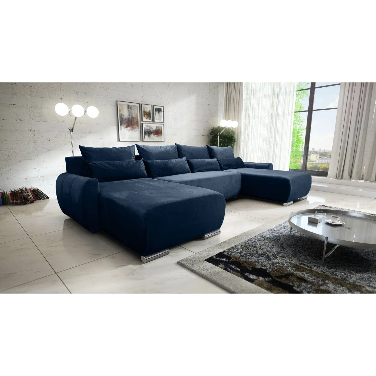 DUŻY NOWOCZESNY NIEBIESKI NAROŻNIK FUNKCJA SPANIA KODA XL