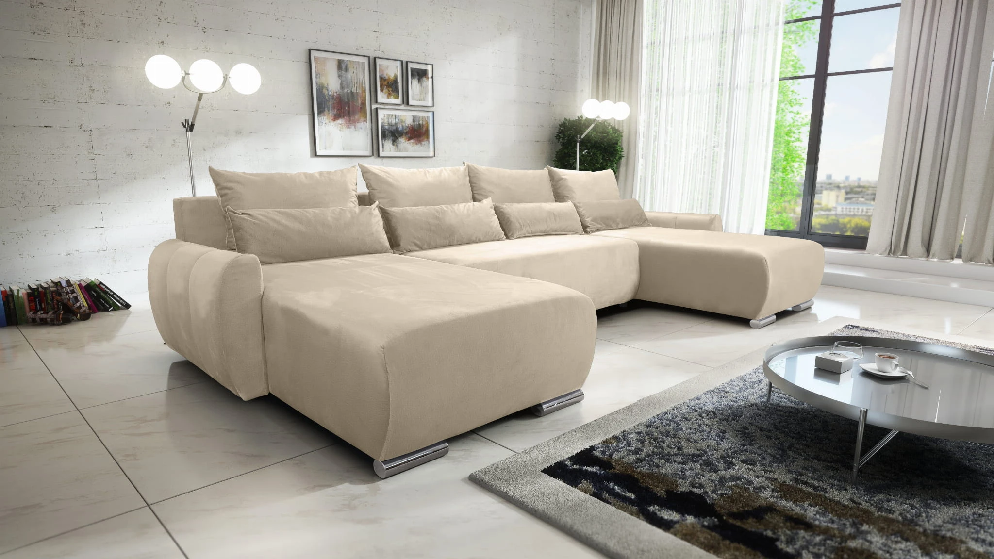 Narożnik rozkładany do salonu Koda został wykonany w kształcie litery U. Narożnik Koda XL może stać się wygodnym i eleganckim centrum Twojego salonu.