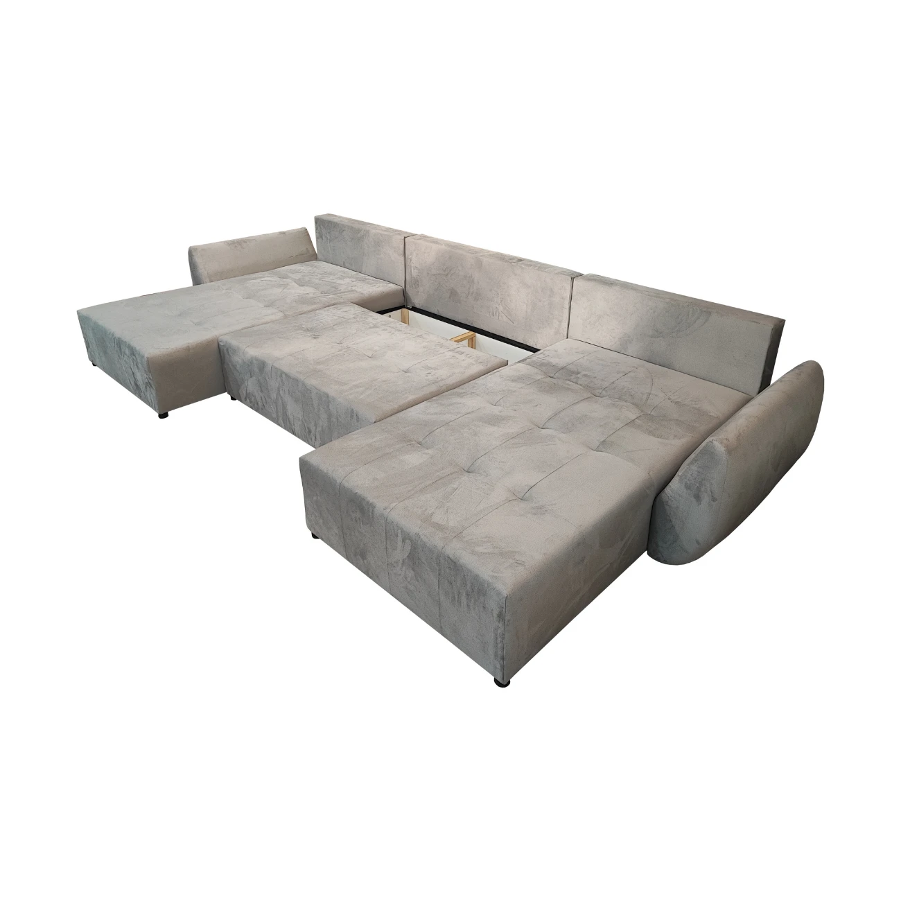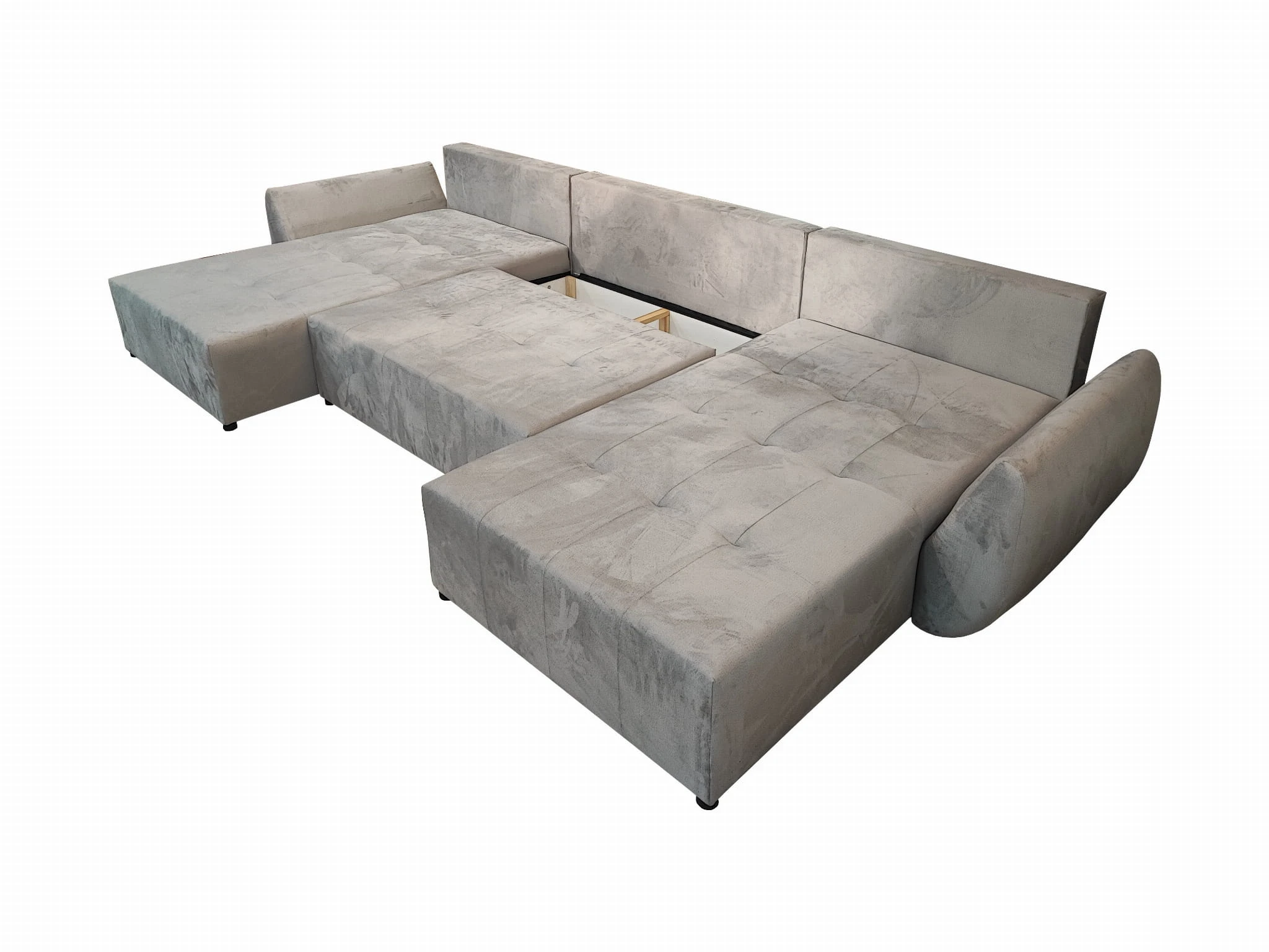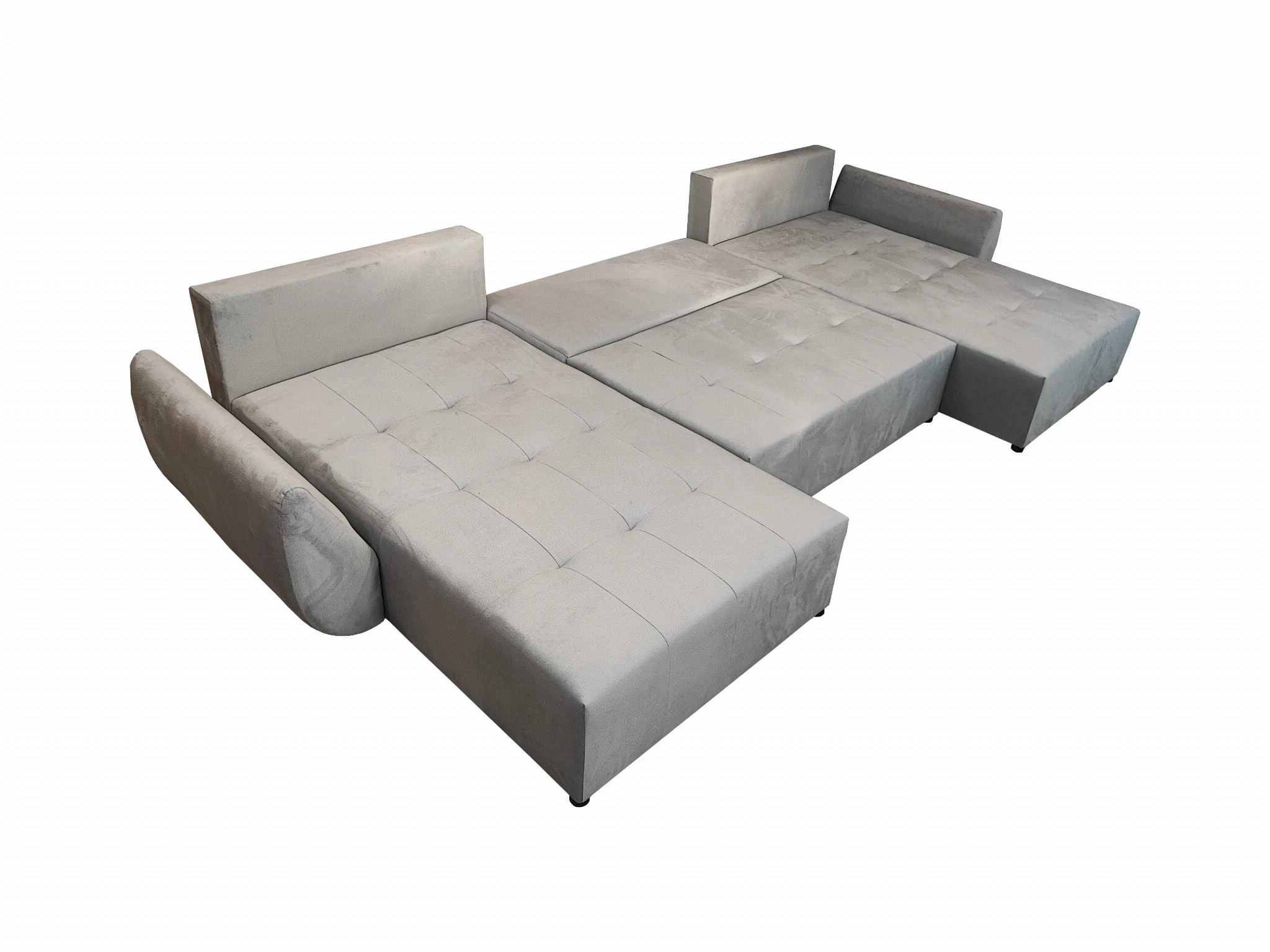 DUŻY SZARY NAROŻNIK ROZKŁADANY FUNKCJA SPANIA MIRA SPRĘŻYNY POJEMNIK WELUR