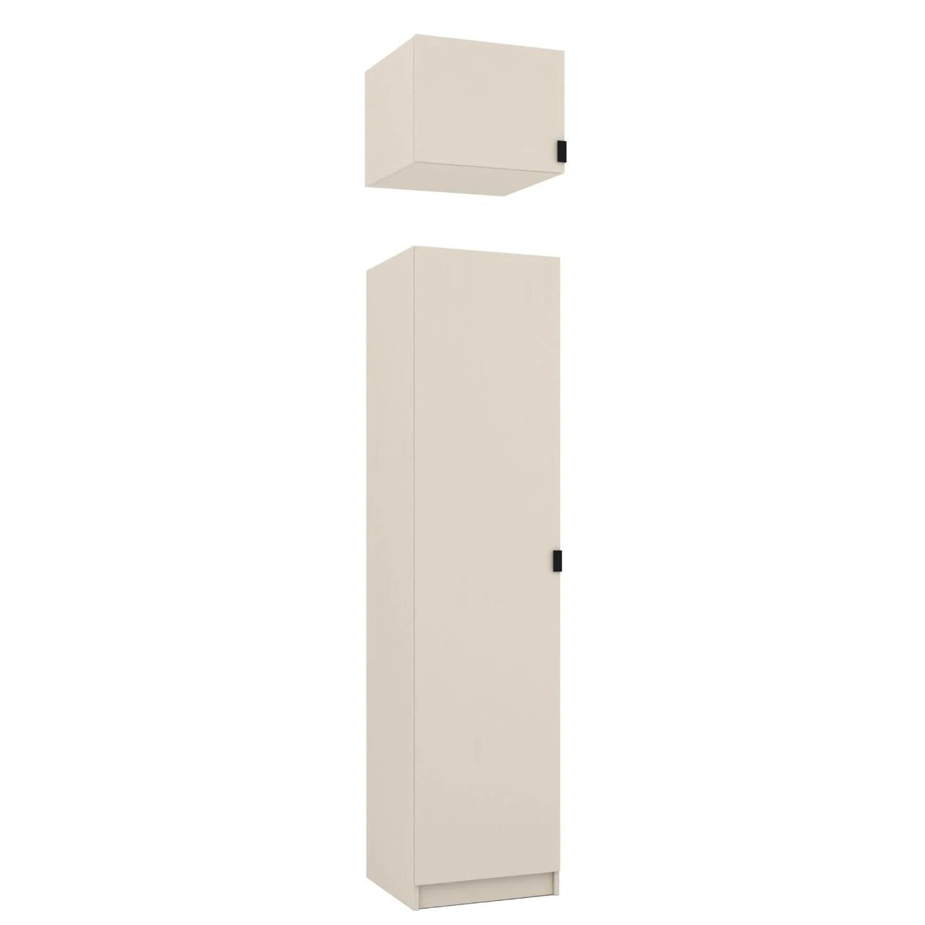 Dodatkowo do Twojej dyspozycji jest korpus narożny o zewnętrznych wymiarach 107x107 cm – wewnętrzne 52x52 cm. Ponadto możesz rozbudować swój zestaw garderoby modułowej o nadstawki, które podwyższą szafę o dodatkowe 40 cm. W ten sposób możesz uzyskać garderobę o wysokości 250 cm.