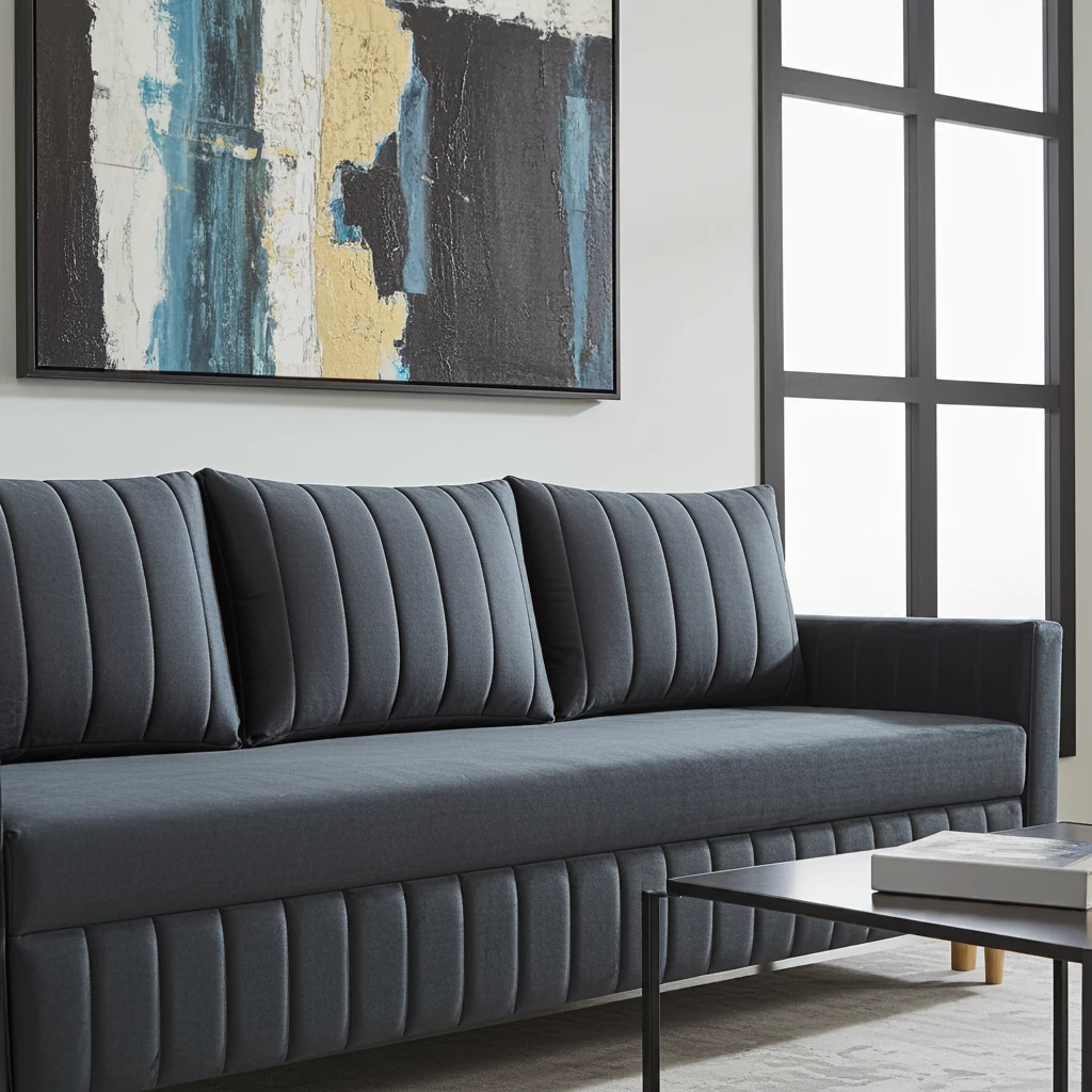 - Trzy duże poduszki : duże przeszycia na poduszki oparciowe, estetykę i wygodę.