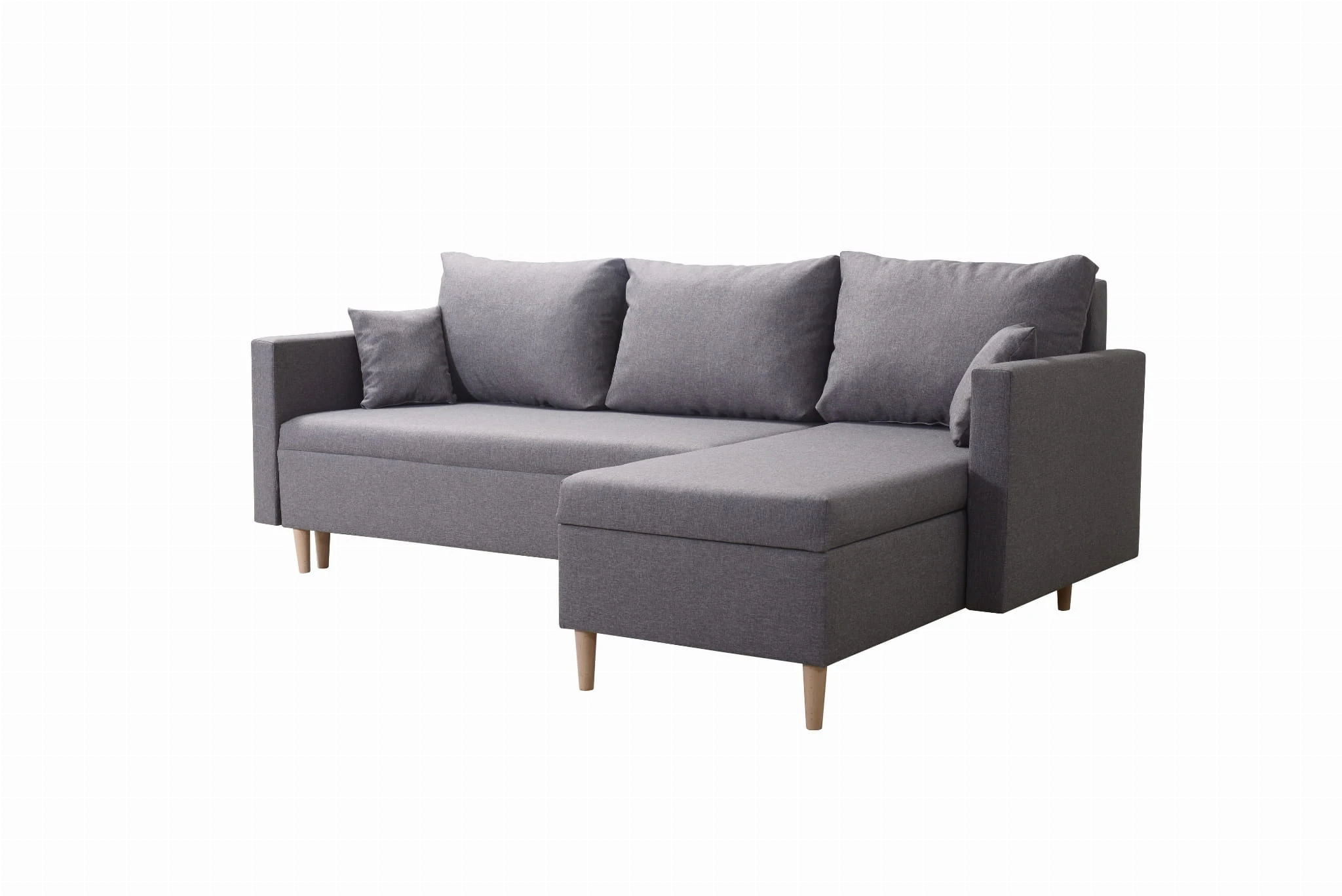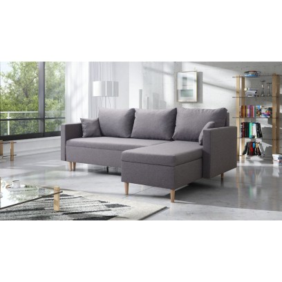 Scandik został wykonany w skandynawskim stylu, który jest niezmiennie bardzo popularny w Polskich Domach. Wysokie nóżki w kolorze naturalnego drewna oraz niezwykle wytrzymała tkanina w szarym odcieniu sprawi, że rogówka z łatwością wkomponuje się do każdego pomieszczenia.