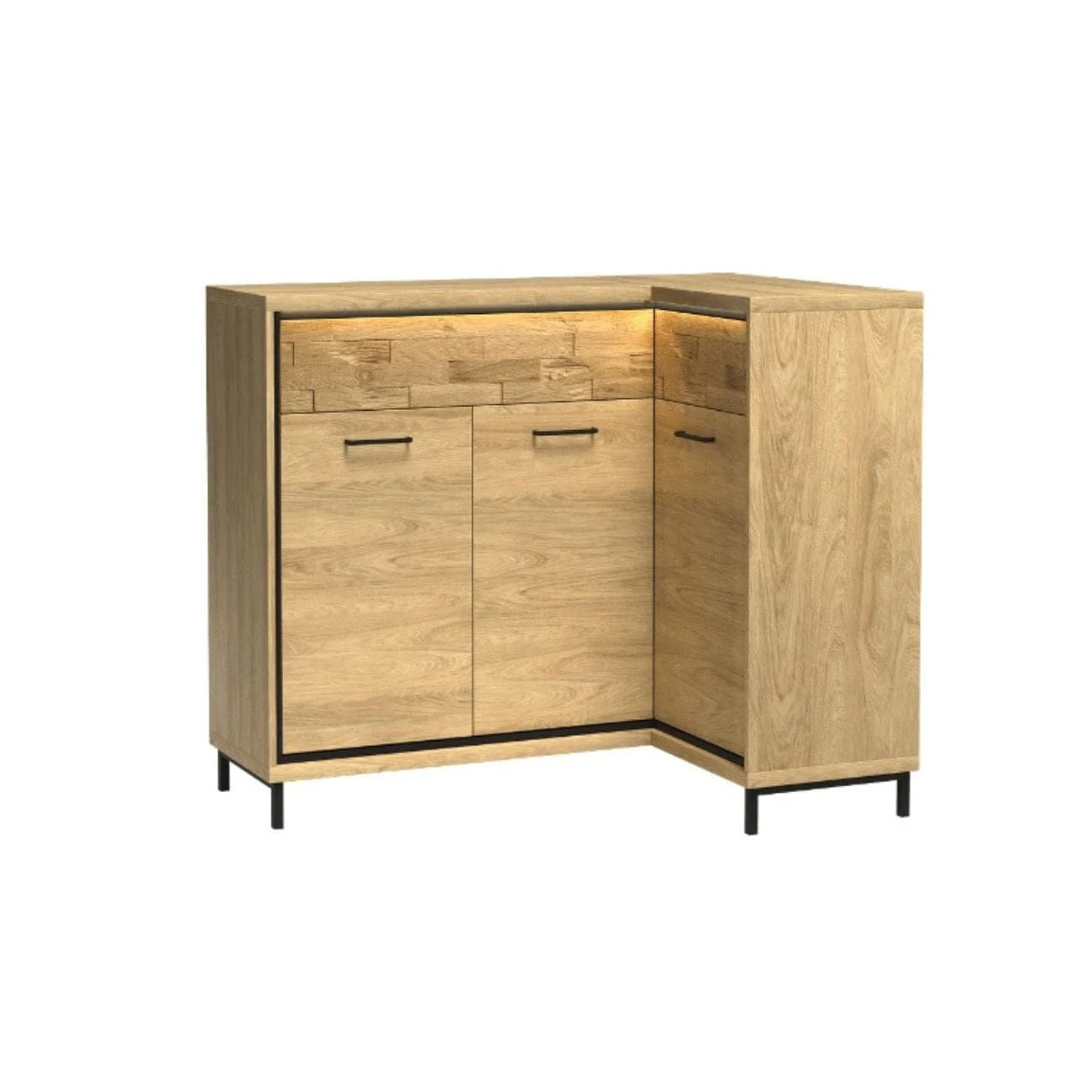 KOMODA NAROŻNA HIKORA ITALIA 2 SZUFLADY DEKOR LED NOGI