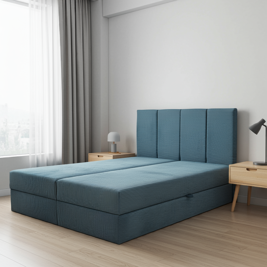 Dlaczego warto wybrać łóżko kontynentalne do sypialni z tkaniną sztruksową?