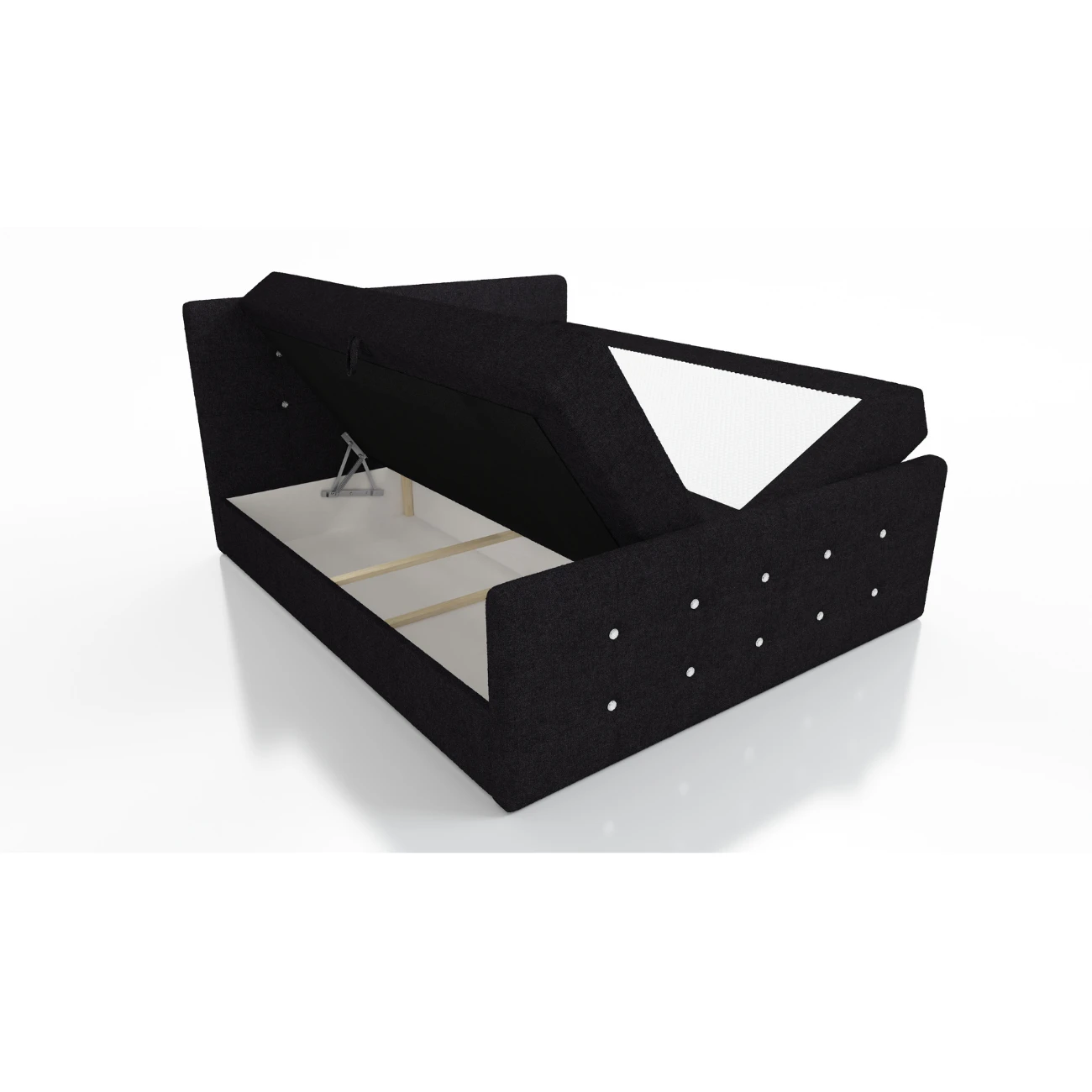 To łóżko to nie tylko mebel — to styl życia. Kryształki na zagłówku i zanożu dodają szczypty glamour (albo całej garści), dzięki czemu nawet leniwe poranki mają w sobie odrobinę prestiżu. A jeśli przypadkiem rzucisz okiem w stronę materaca — czeka na Ciebie duet idealny: pianka i sprężyna bonell. To jak relacja marzeń — sprężysty związek z miękkim wsparciem!