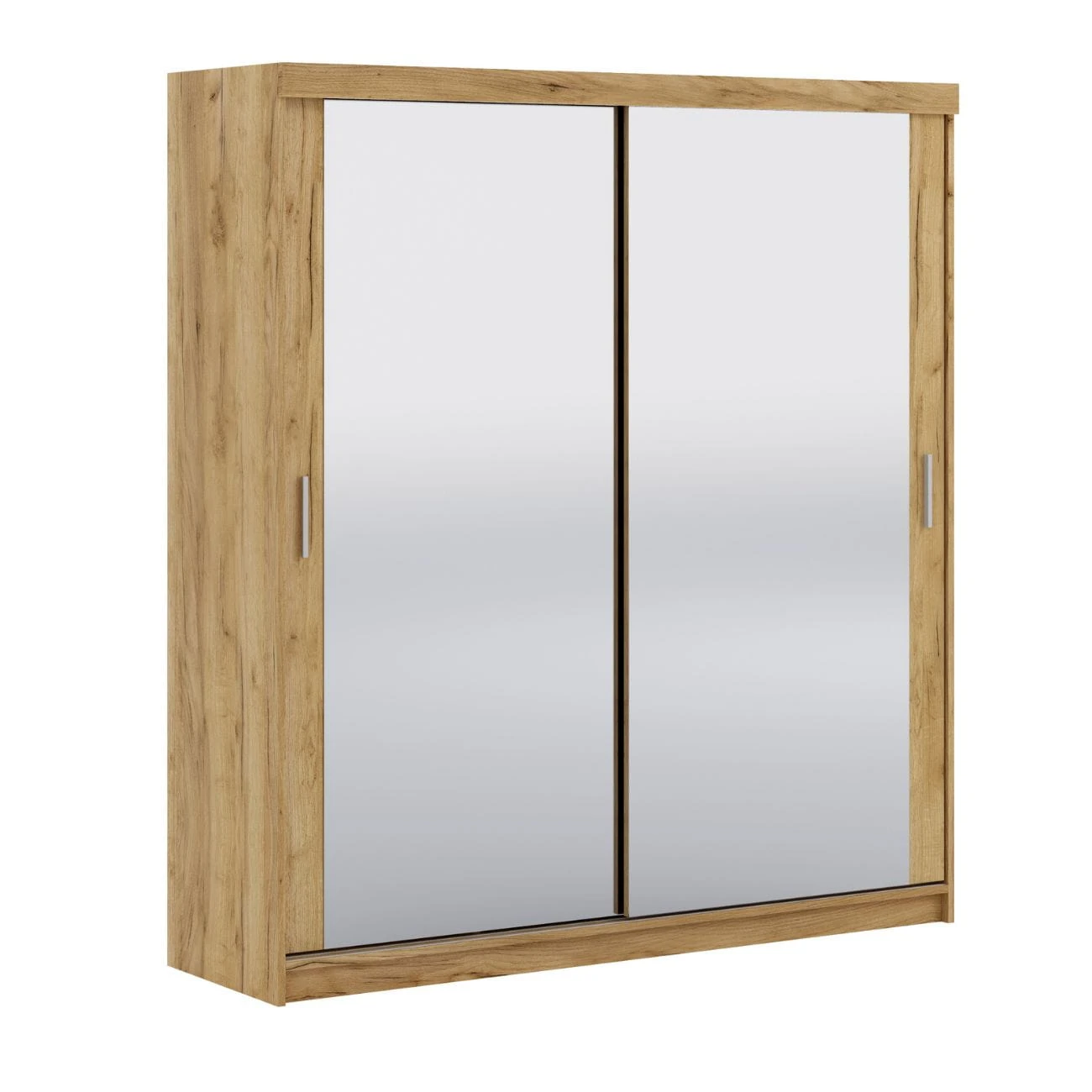 Szafa przesuwna na ubrania Lexy to elegancka, stylowa i prosta szafa do sypialni. Szafa przesuwna Lexy została wykonana w modnym kolorze Dąb Kraft Złoty. To piękny drewniany kolor, który łatwo wkomponujesz do salonu, sypialni czy nawet przedpokoju. Szafa została wyposażona w dwa duże lustra, które optycznie powiększą Twoją przestrzeń. Duże lustro w szafie przesuwnej to również wygoda sprawdzenia swojej stylizacji przed wyjściem.