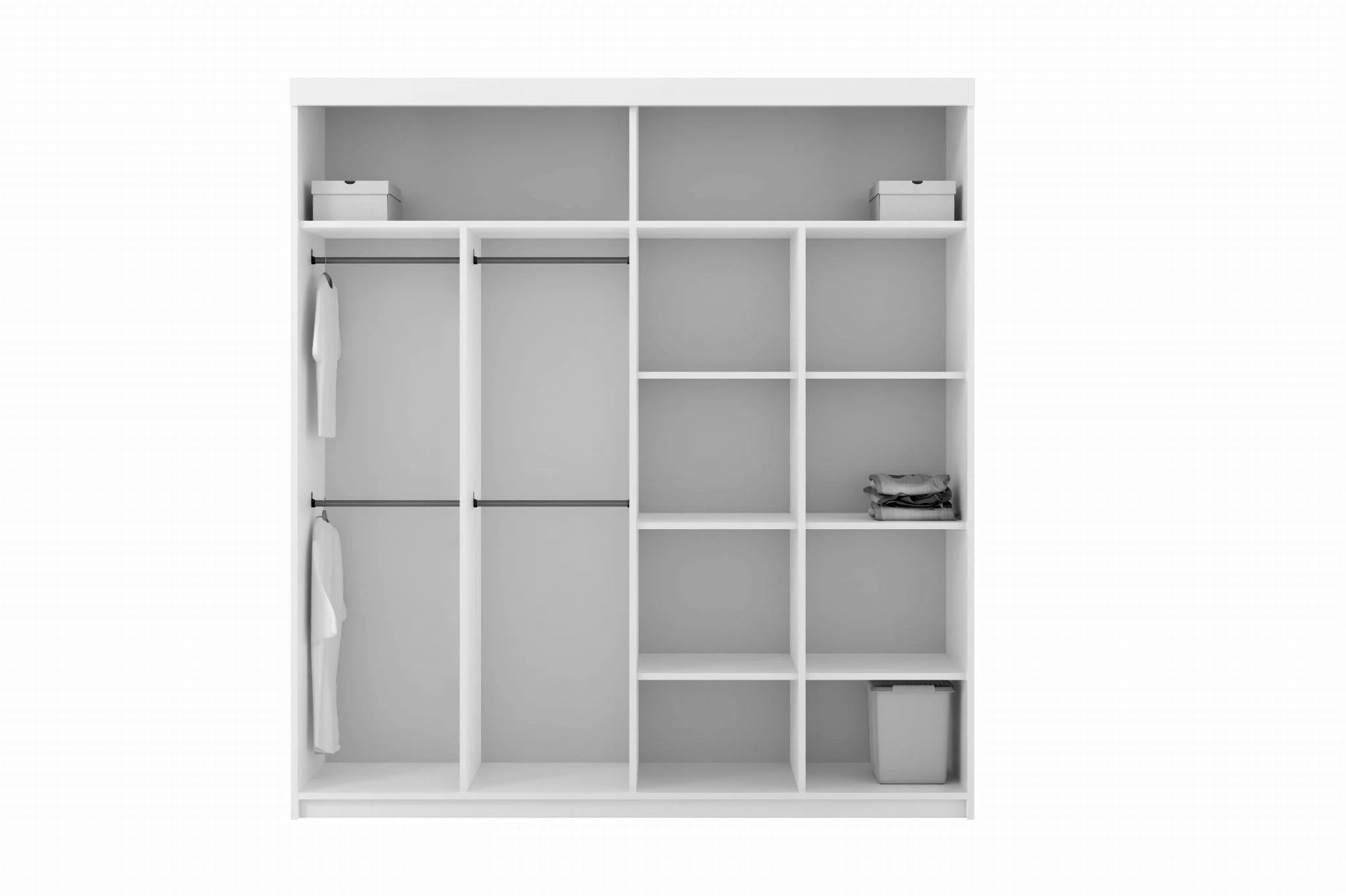 LUSTRZANA SZAFA PRZESUWNA NA UBRANIA Z UNIWERSALNYM WNĘTRZEM LEXY 200 CM