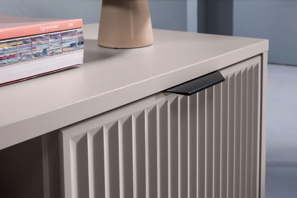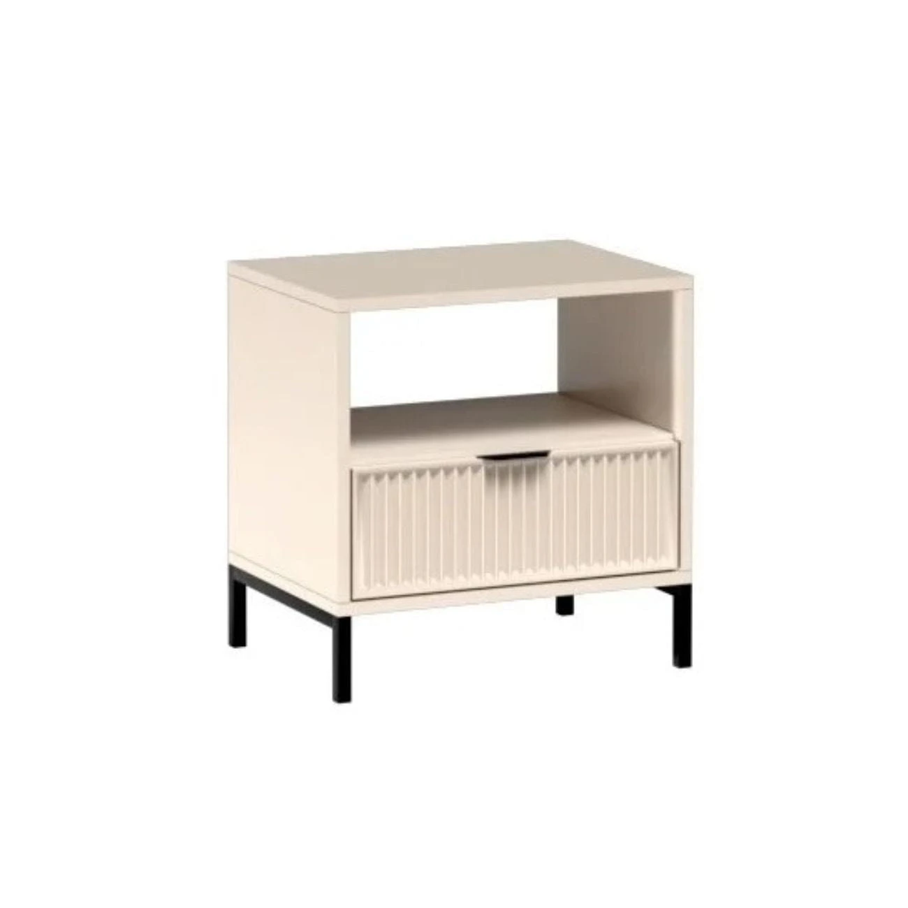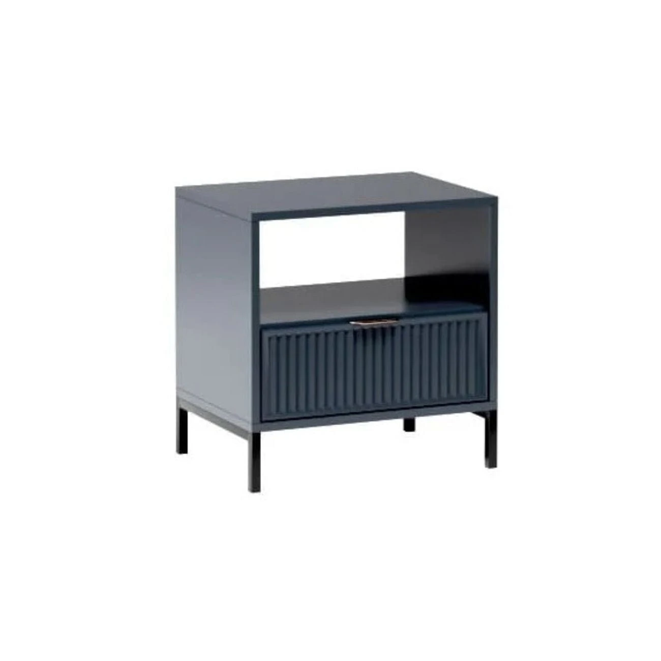 NOWOCZESNA SZAFKA NOCNA Z SZUFLADĄ ORAZ RYFLOWANYMI FRONTAMI CASHMERE/INDIGO
