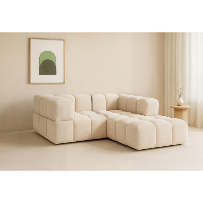 Narożnik modułowy Clixi jest meblem wolnostojącym - możesz ją umieścić na środku salonu i wciąż będzie się świetnie prezentować. Tył rogówki modułowej został obity tkaniną, a niebanalny design w postaci kostek przykuje zarówno Twoją uwagę jak i Twoich gości.
