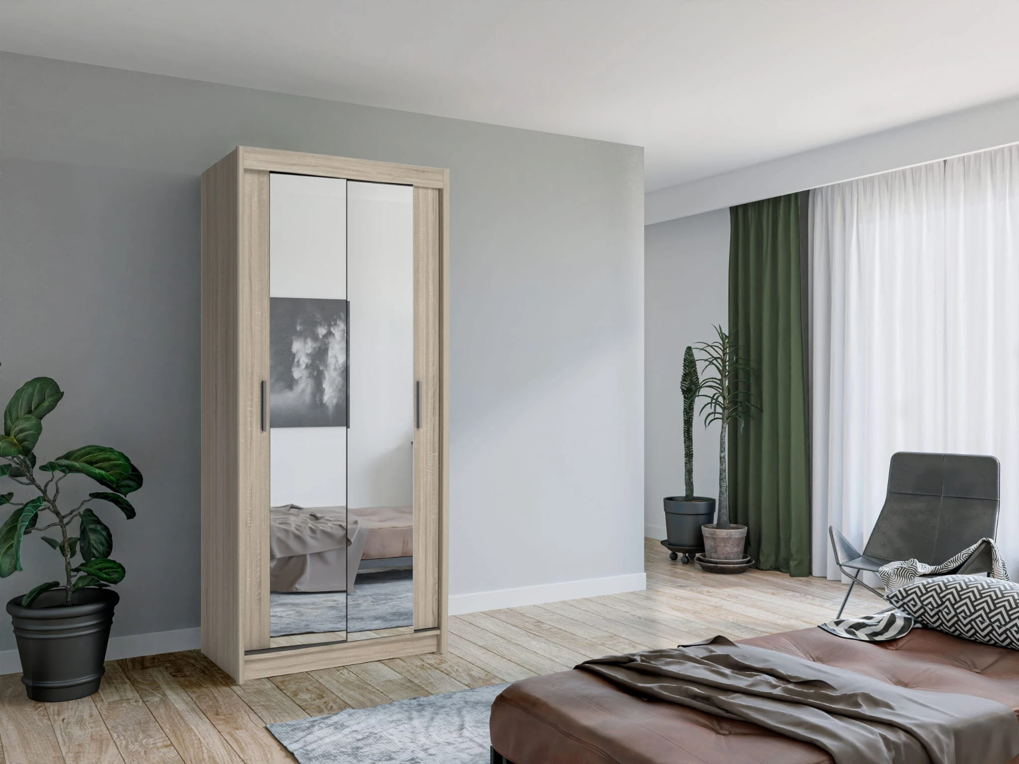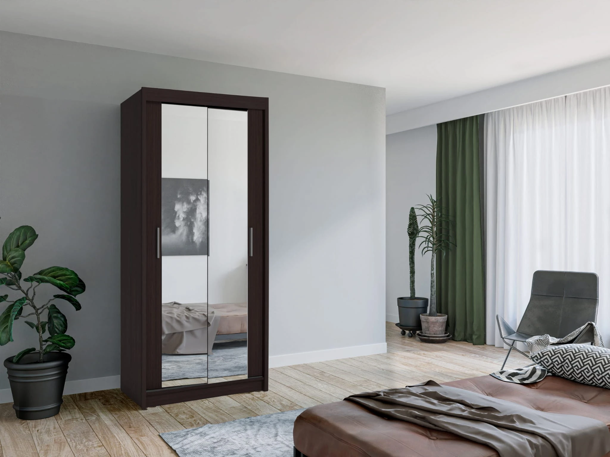 Mała szafa przesuwna z lustrem sprawdzi się zarówno w sypialni, przedpokoju jak i w biurze.