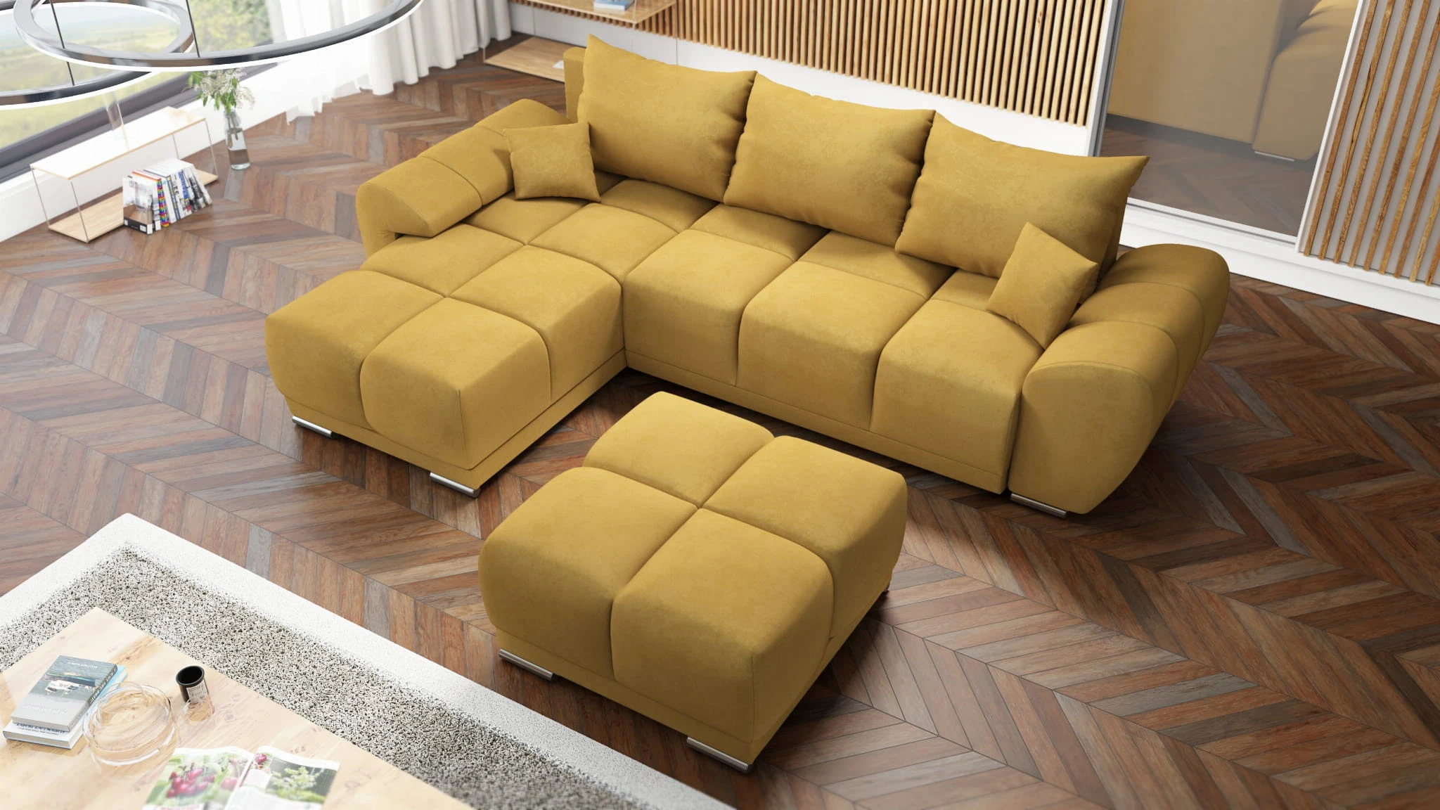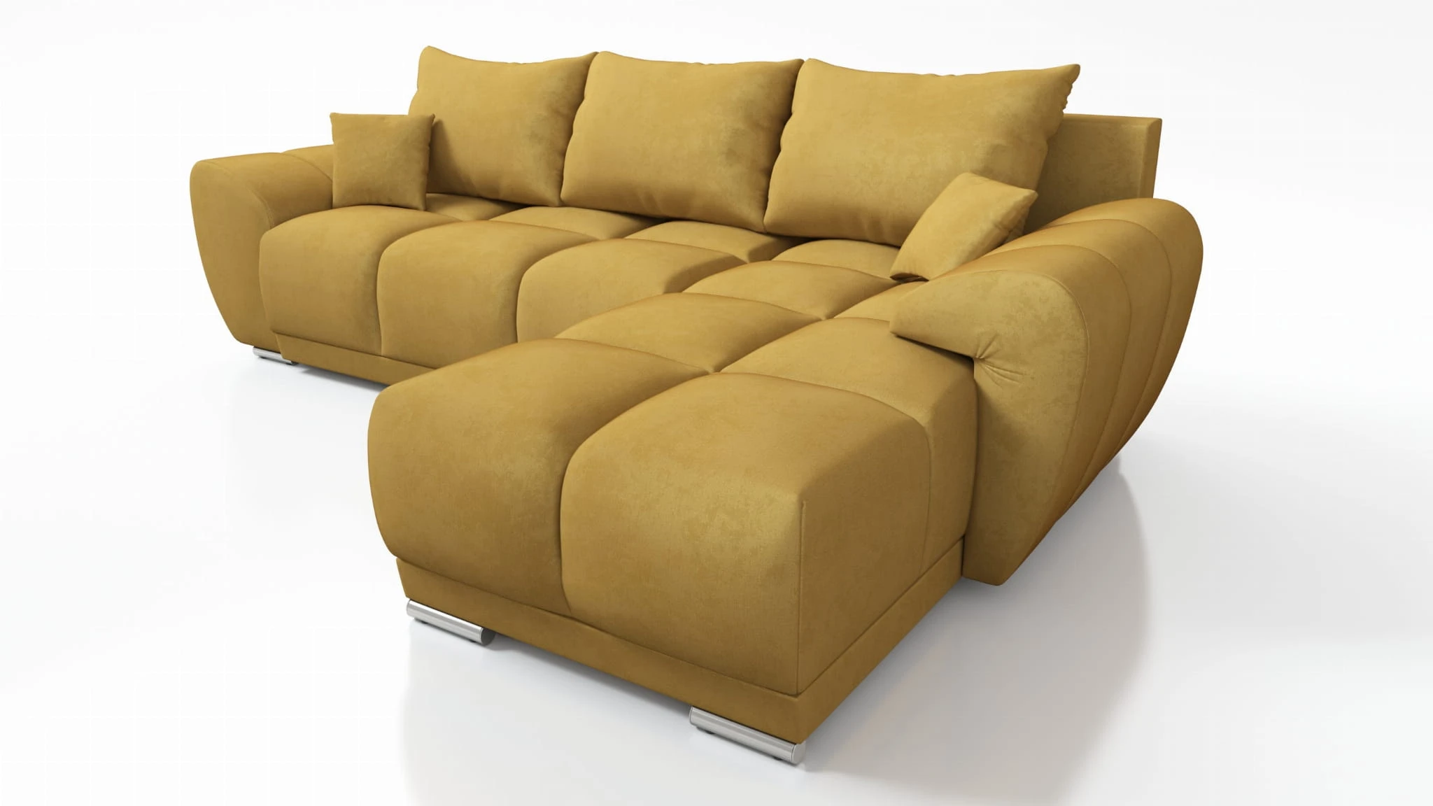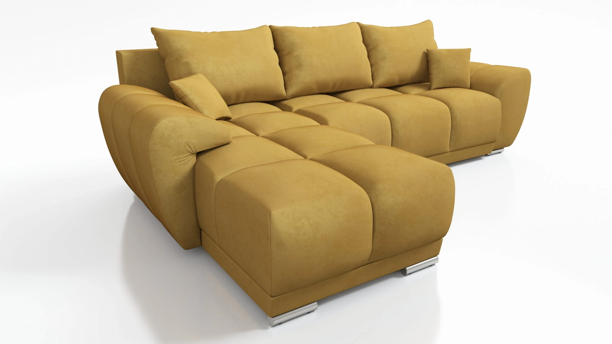 MUSZTARDOWY NAROŻNIK ROZKŁADANY DO SALONU ROGÓWKA Z FUNKCJĄ SPANIA HONEY L