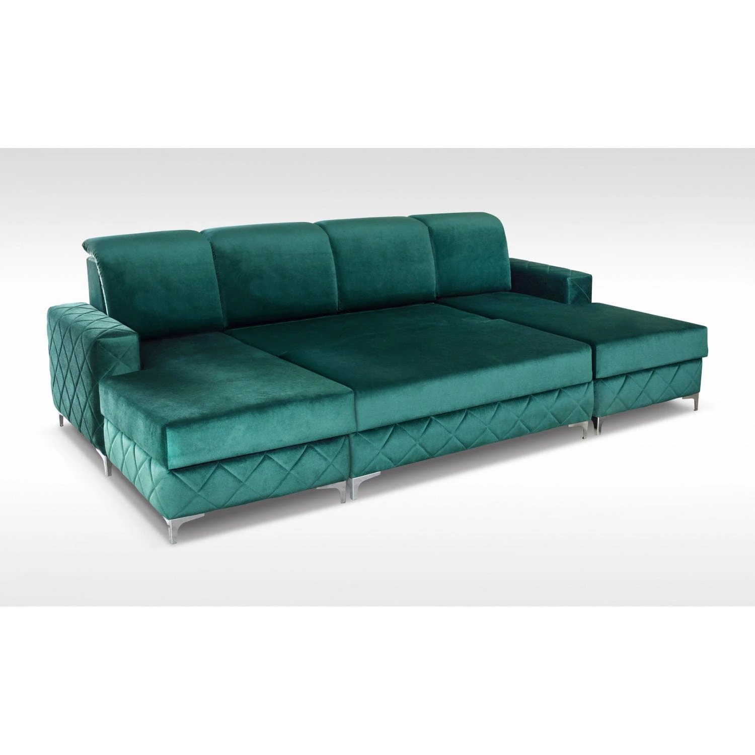 Prezentowany narożnik wykonywany jest w aksamitnej tkaninie typu welur.