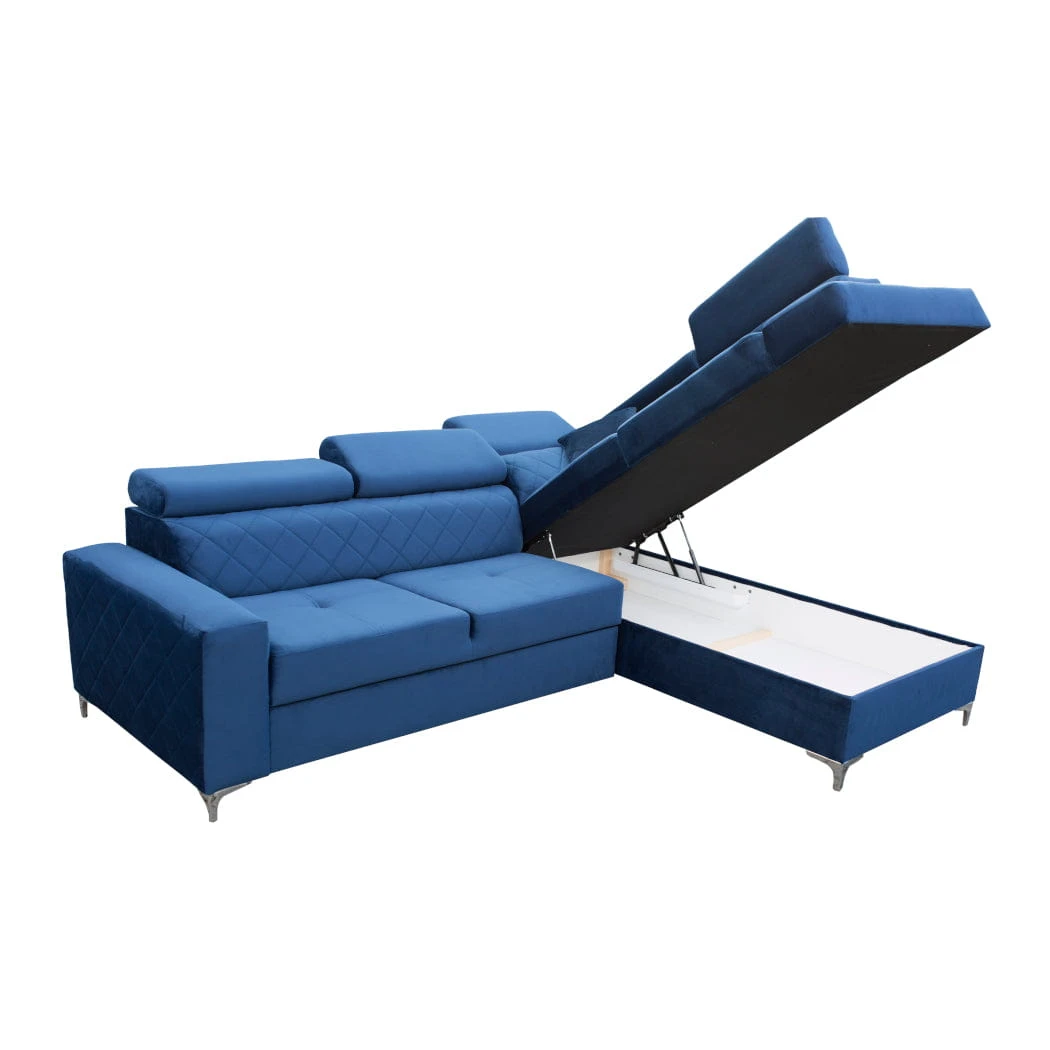 Narożnik Gloss to połączenie nowoczesnego designu z ponadczasowym stylem. Posiada funkcję spania i przestronny pojemnik na pościel. Chromowane nóżki nadają lekkości, a regulowane zagłówki sprawiają, że narożnik Gloss jest bardzo komfortowy w użytkowaniu. Pikowania pozwalają wpasować narożnik w wiele aranżacji wnętrz- nowoczesnych, jak i bardziej tradycyjnych.