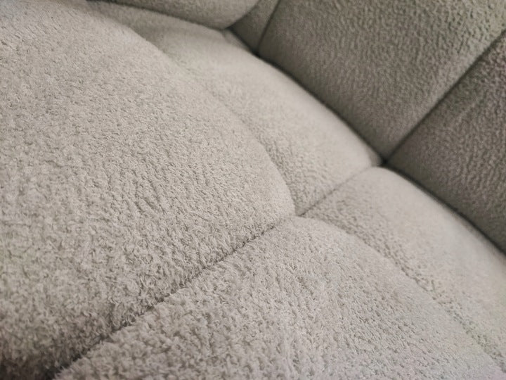 Tkanina Quelle to wyjątkowy materiał typu bouclé, potocznie nazywany "barankiem", który idealnie wpisuje się w najnowsze wnętrzarskie trendy. Jej struktura przyciąga wzrok i dodaje meblom charakteru, a niezwykle przyjemna w dotyku powierzchnia sprawia, że każdy kontakt z nią to czysta przyjemność.